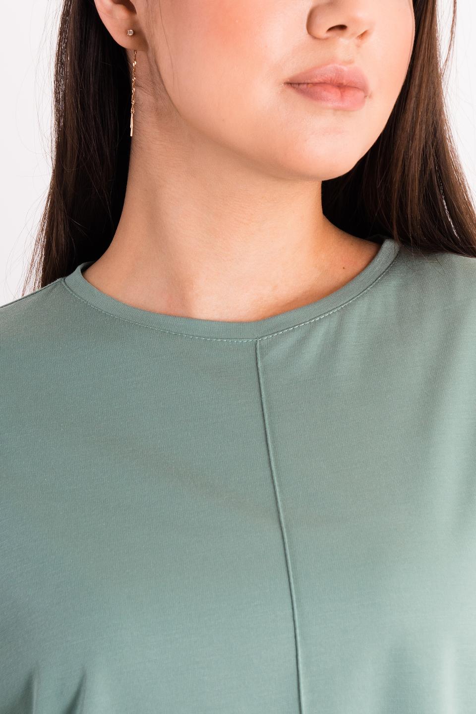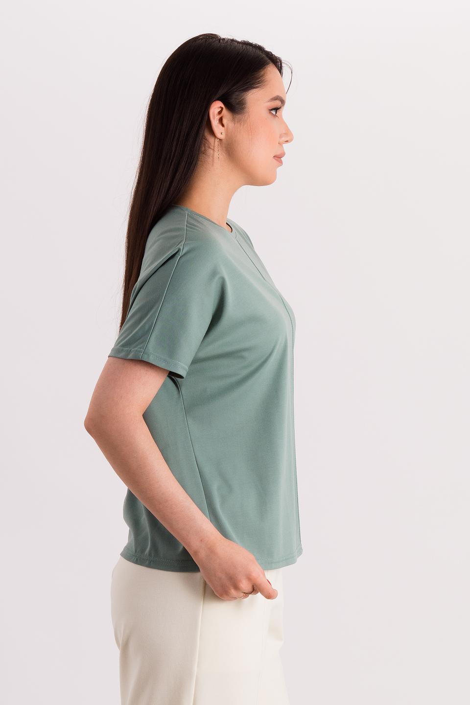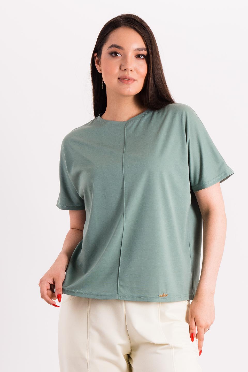 Описание: Прямая футболка силуэта оверсайз со спущенным плечом выручит в любой ситуации! Она отлично сочетается с брюками и юбками за счёт небольшой длины. Цельновыкроенный рукав прикрывает руку до локтя, обеспечивая свободу движений. Вертикальный защип спереди зрительно разбивает фигуру.