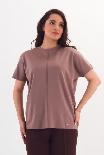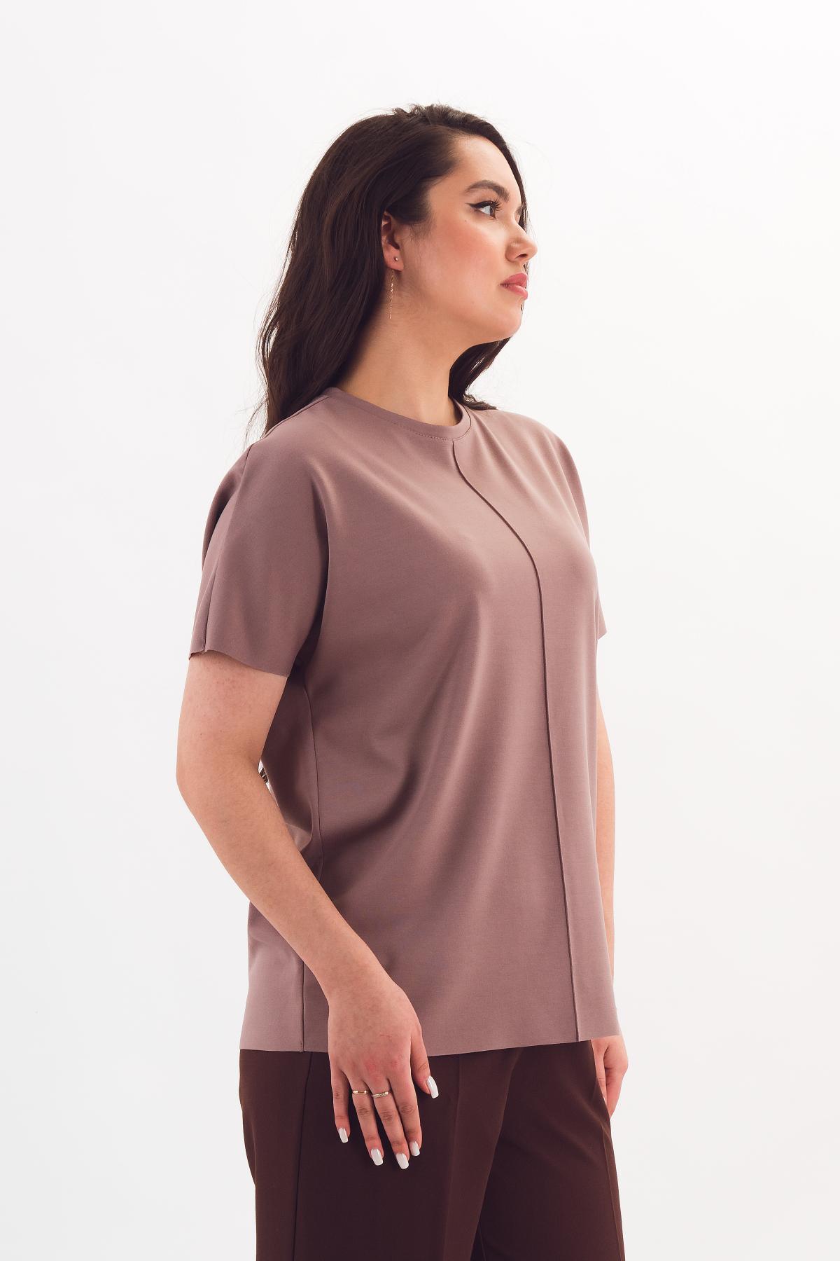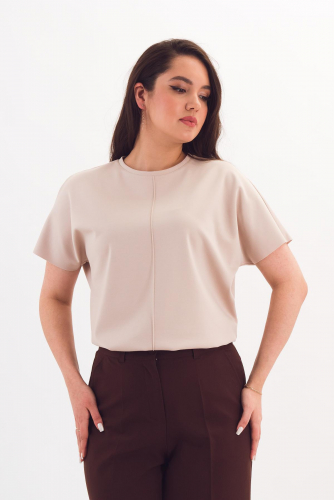 Описание: Прямая футболка силуэта оверсайз со спущенным плечом выручит в любой ситуации! Она отлично сочетается с брюками и юбками за счёт небольшой длины. Цельновыкроенный рукав прикрывает руку до локтя, обеспечивая свободу движений. Вертикальный защип спереди зрительно разбивает фигуру.