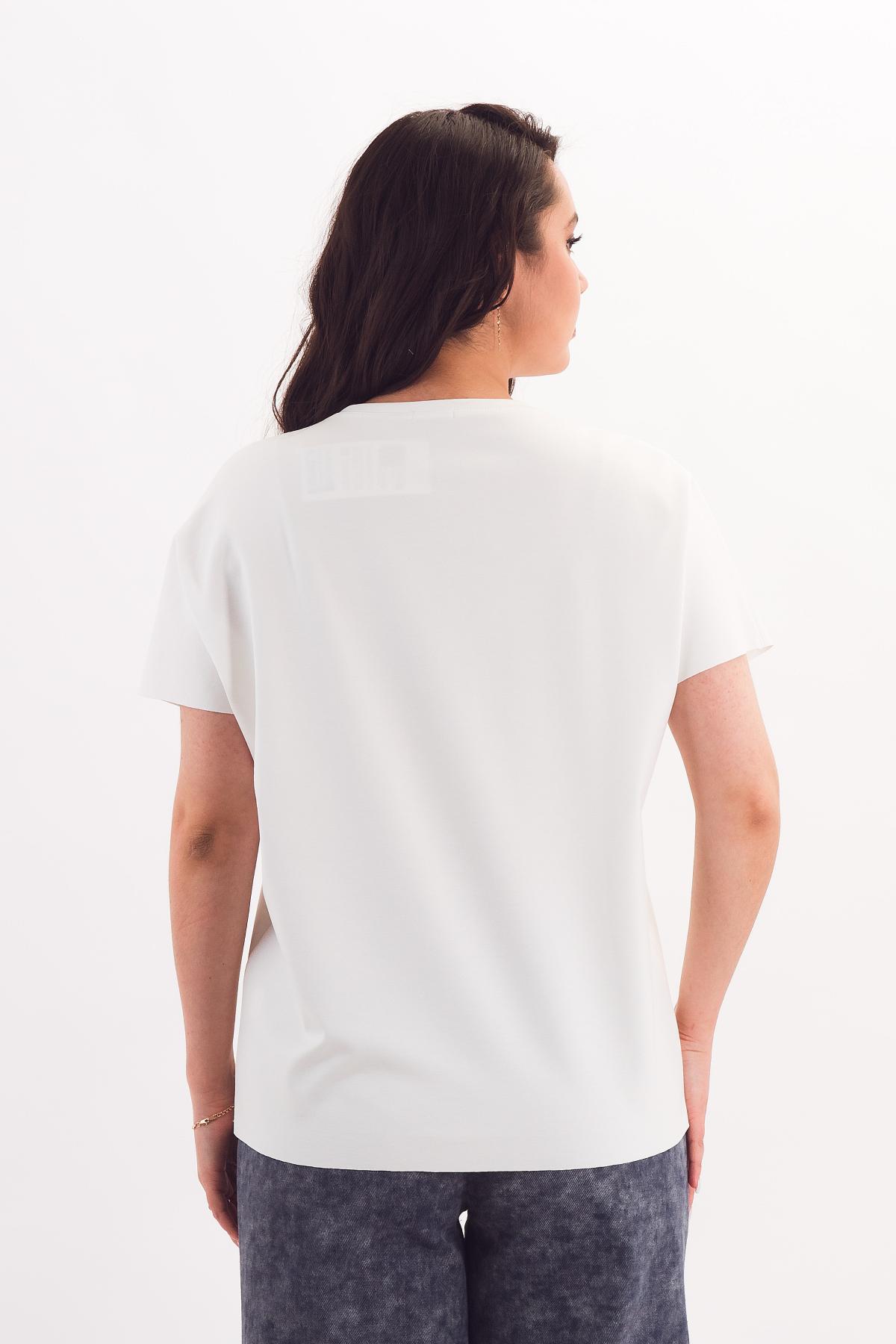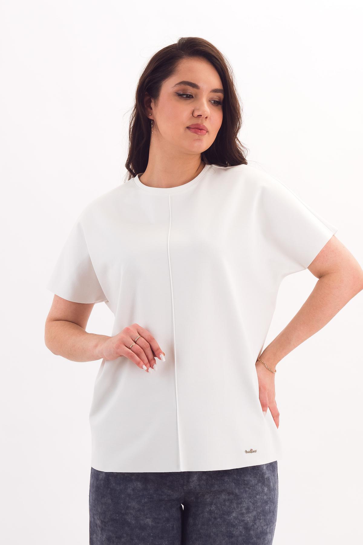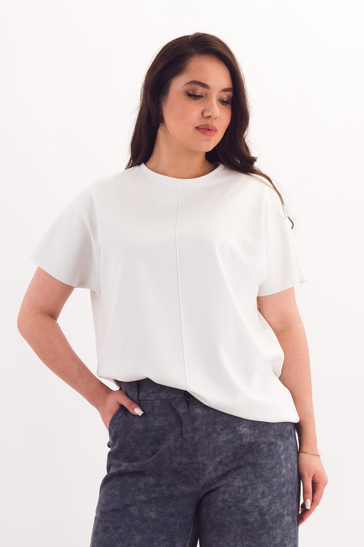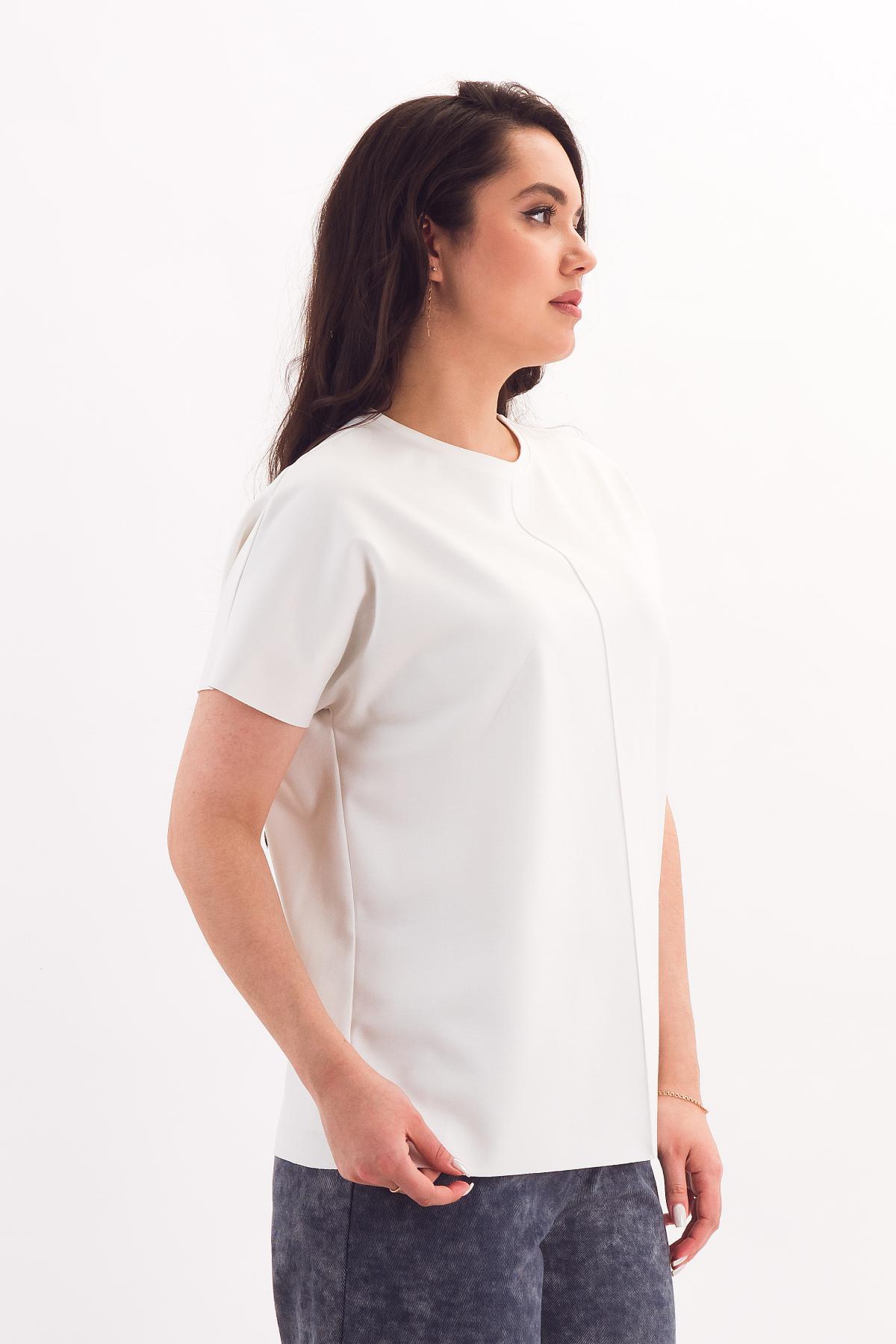 Описание: Прямая футболка силуэта оверсайз со спущенным плечом выручит в любой ситуации! Она отлично сочетается с брюками и юбками за счёт небольшой длины. Цельновыкроенный рукав прикрывает руку до локтя, обеспечивая свободу движений. Вертикальный защип спереди зрительно разбивает фигуру.