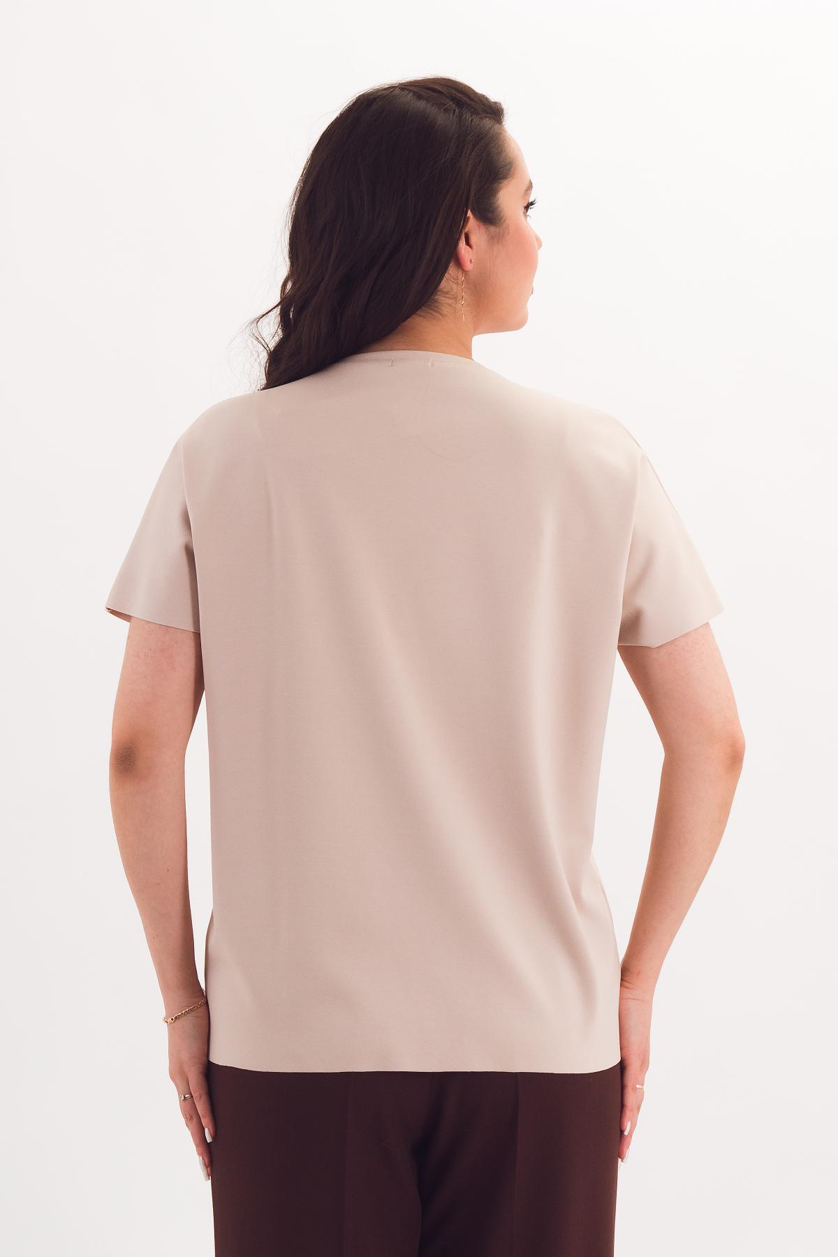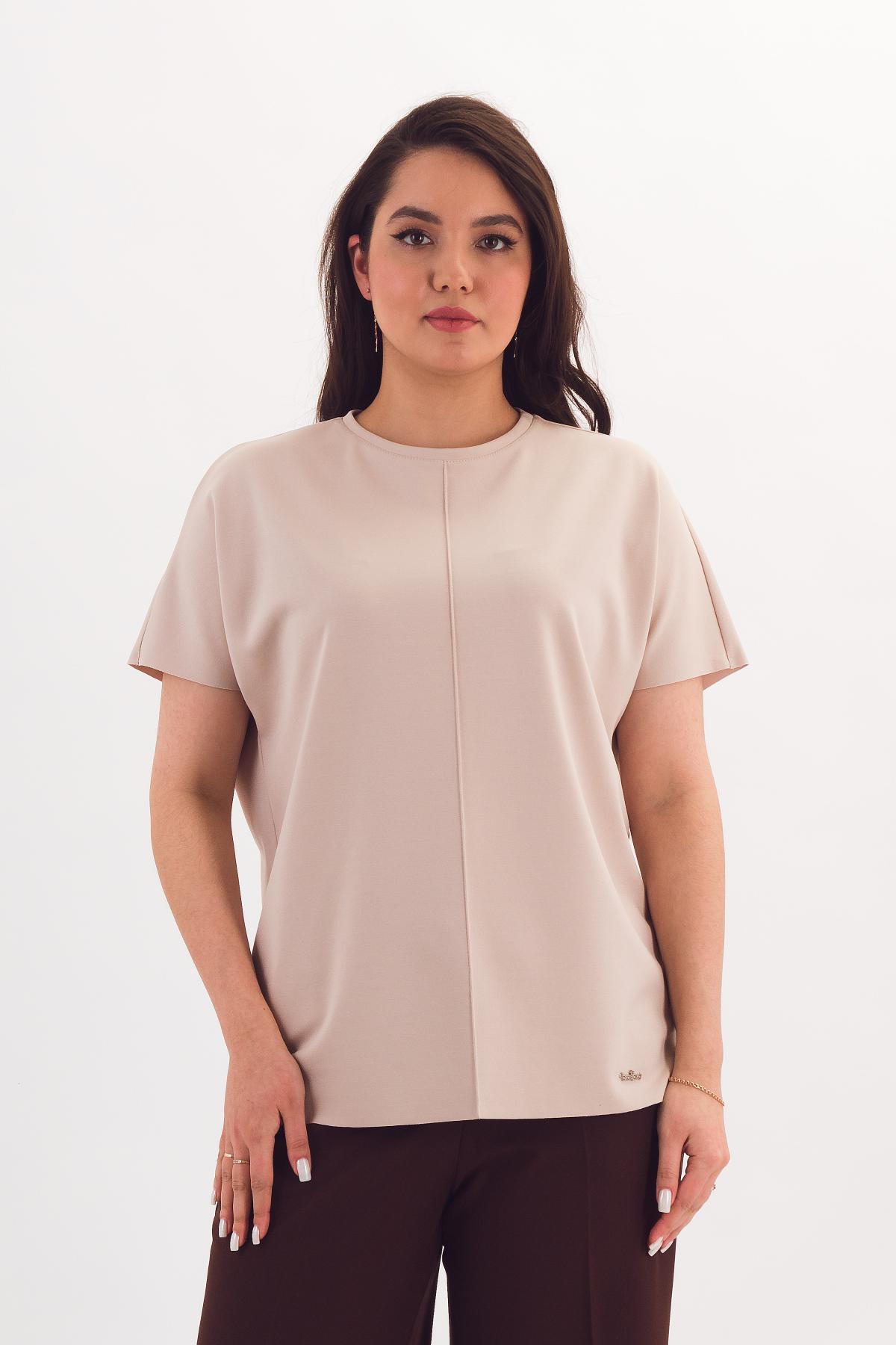 Описание: Прямая футболка силуэта оверсайз со спущенным плечом выручит в любой ситуации! Она отлично сочетается с брюками и юбками за счёт небольшой длины. Цельновыкроенный рукав прикрывает руку до локтя, обеспечивая свободу движений. Вертикальный защип спереди зрительно разбивает фигуру.