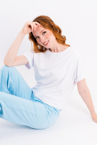 Описание: Комфортная футболка со спущенным плечом и манжетами с отворотом. Идеальный вариант для фигур верхнего типа.