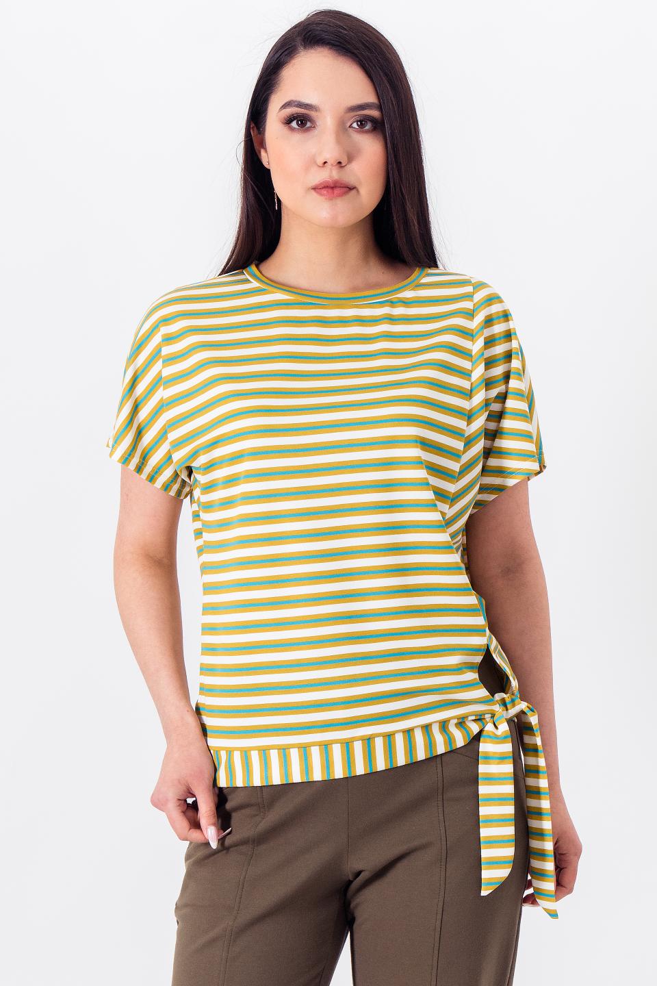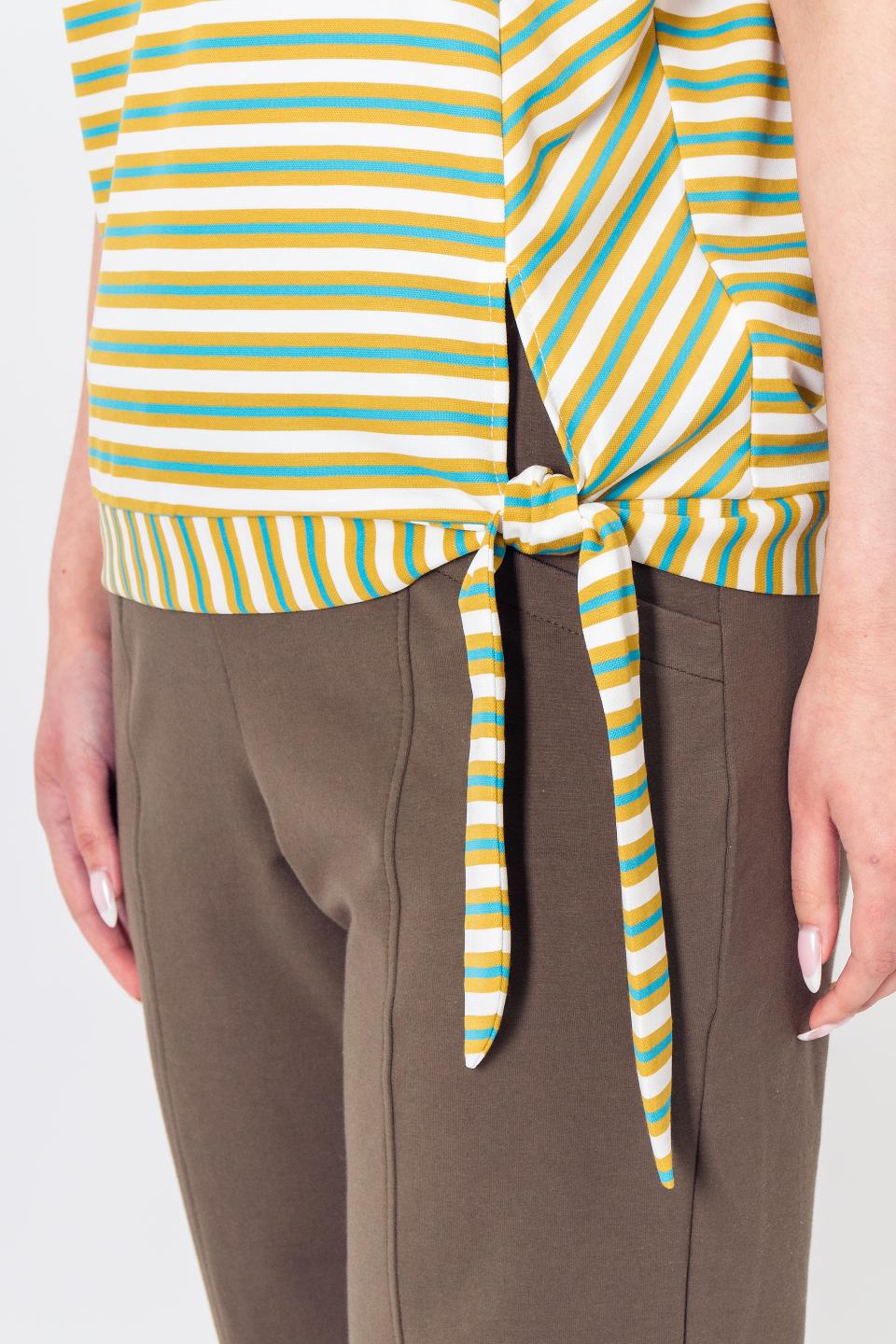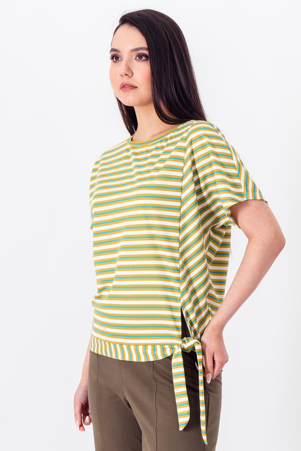 Описание: Асимметричная футболка с поясом-завязками отлично впишется в повседневный образ.