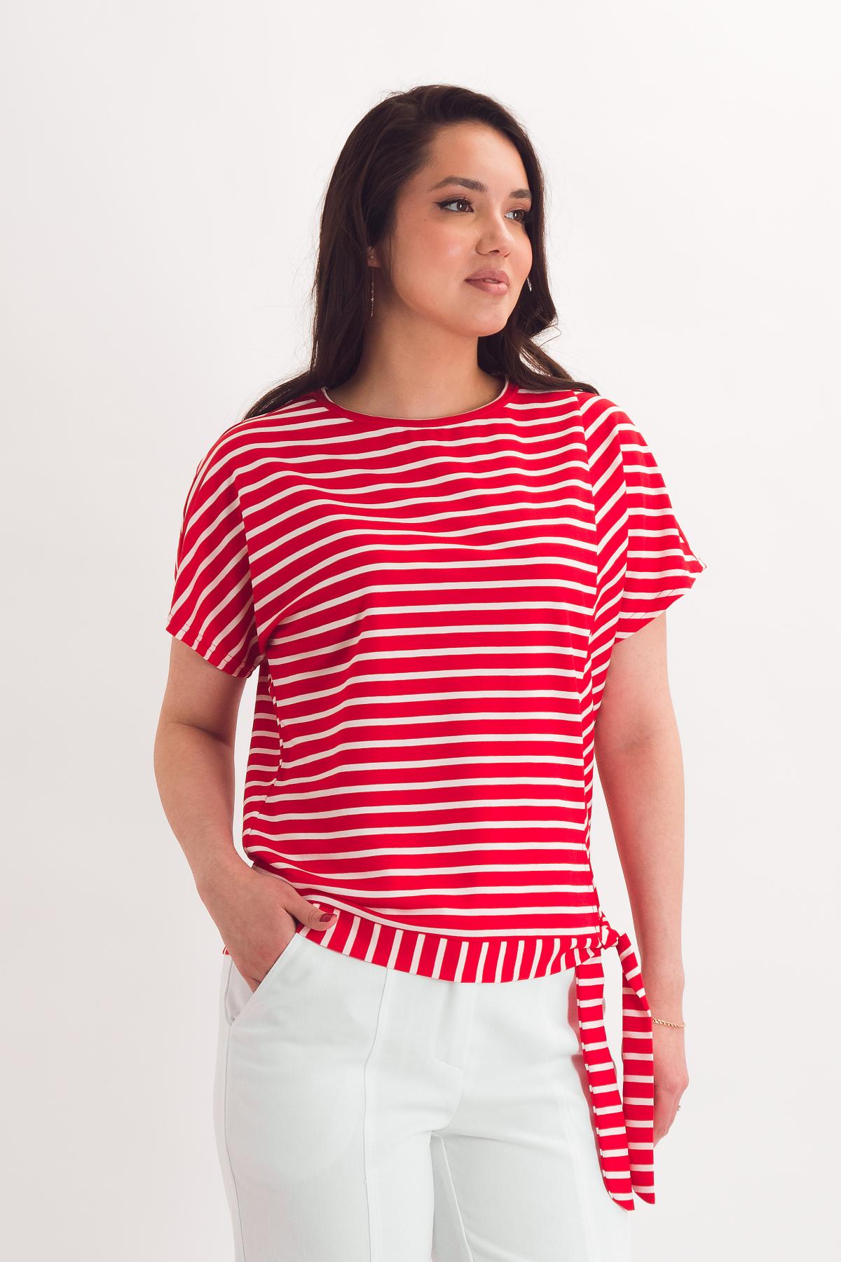 Описание: Асимметричная футболка с поясом-завязками отлично впишется в повседневный образ.