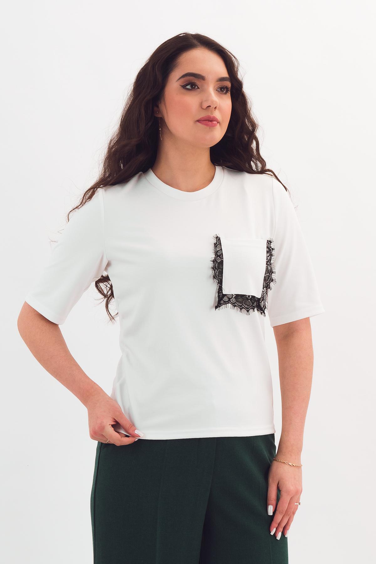 Описание: Молодежная футболка прямого силуэта, с удобными, слегка расширенными к низу рукавами и декоративным карманом с кружевом, поможет вам создать интересный и модный образ, в котором вы будете чувствовать себя комфортно.