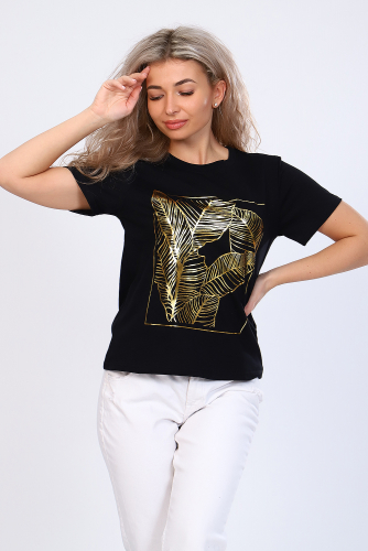 Футболка классического фасона, прямого кроя, с коротким рукавом и округлым вырезом. Декорирована принтом. Универсальная модель футболки отлично подойдет для любого образа и станет необходимой вещью в вашем гардеробе. Ткань кулирка пенье, плотность 160 г.