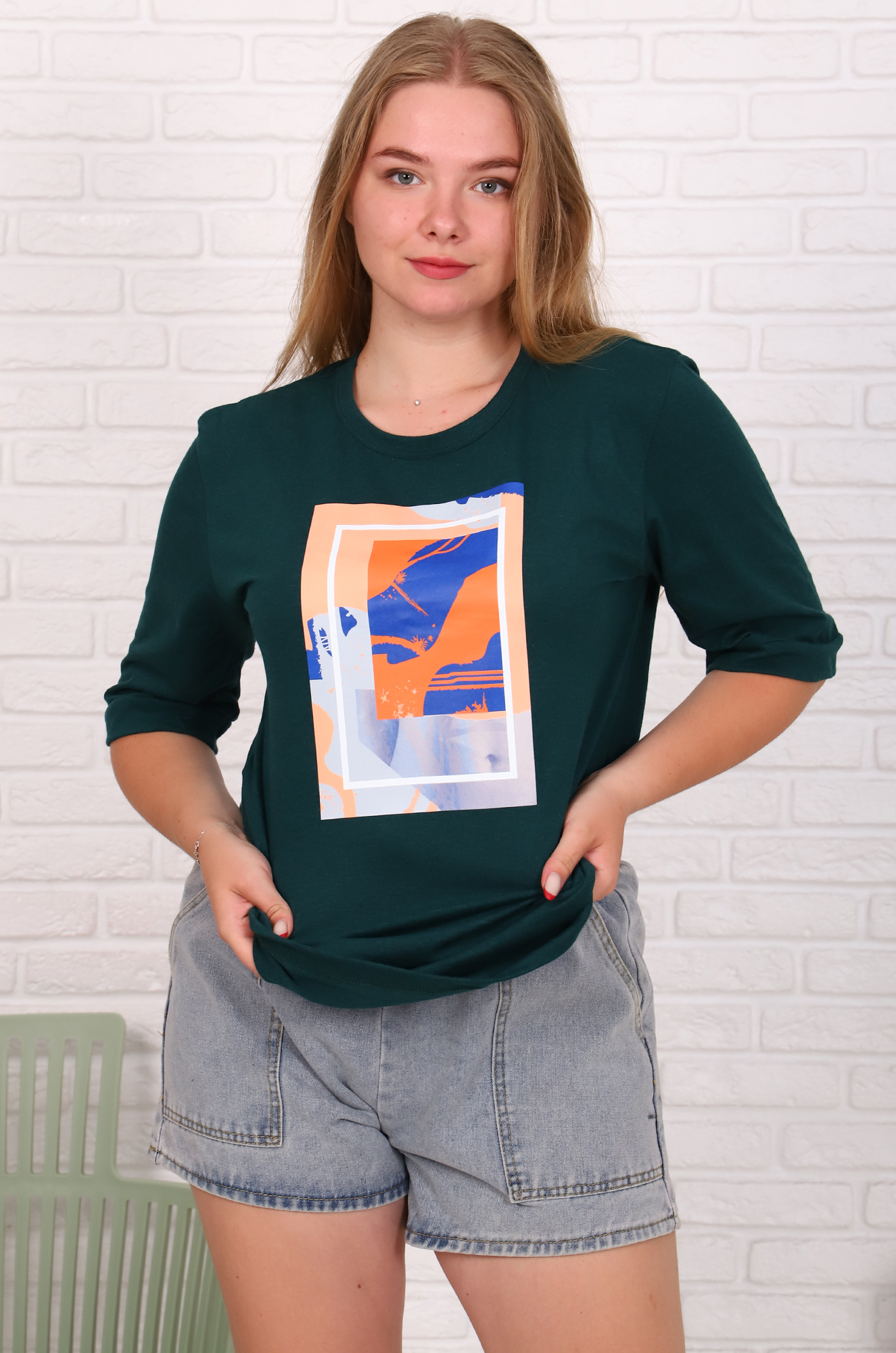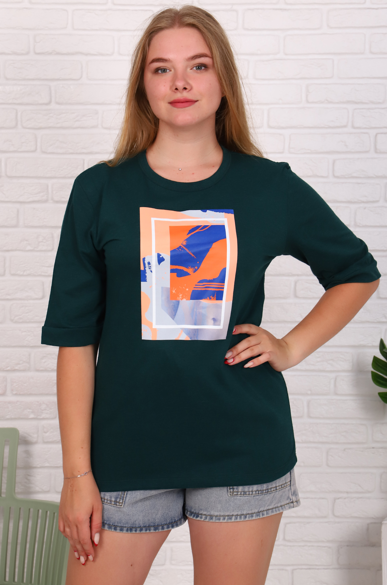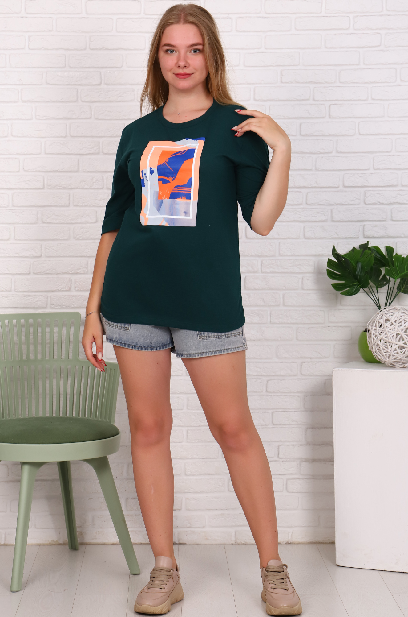 Стильная женская футболка с печатным принтом. Модель свободного кроя "оверсайз" с удлинённым рукавом.