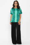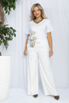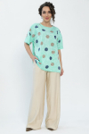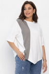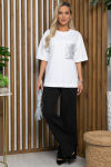 Стильная женская футболка — это must-have в гардеробе каждой модницы! Благодаря свободному крою и спущенным плечам она выглядит непринуждённо и комфортно. Её можно носить как заправленной в юбку или брюки, так и навыпуск. Эта футболка станет отличным дополнением как к активному образу, так и к расслабленному повседневному наряду, придавая ему стильный акцент.