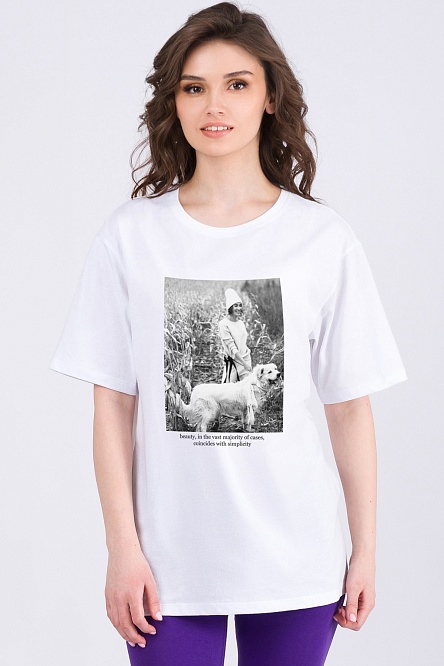 Удлиненная футболка из мягкого хлопкового полотна с короткими рукавами и округлым вырезом.Изделие отлично сочетается с бриджами арт. 0668.
