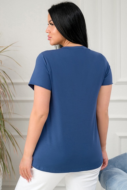 Необычная футболка, с разрезами на плече и боковой части модели. Футболка светлого оттенка индиго. Модель свободного силуэта, плавно расширяется к низу, что позволяет чувствовать свободу и легкость применения.