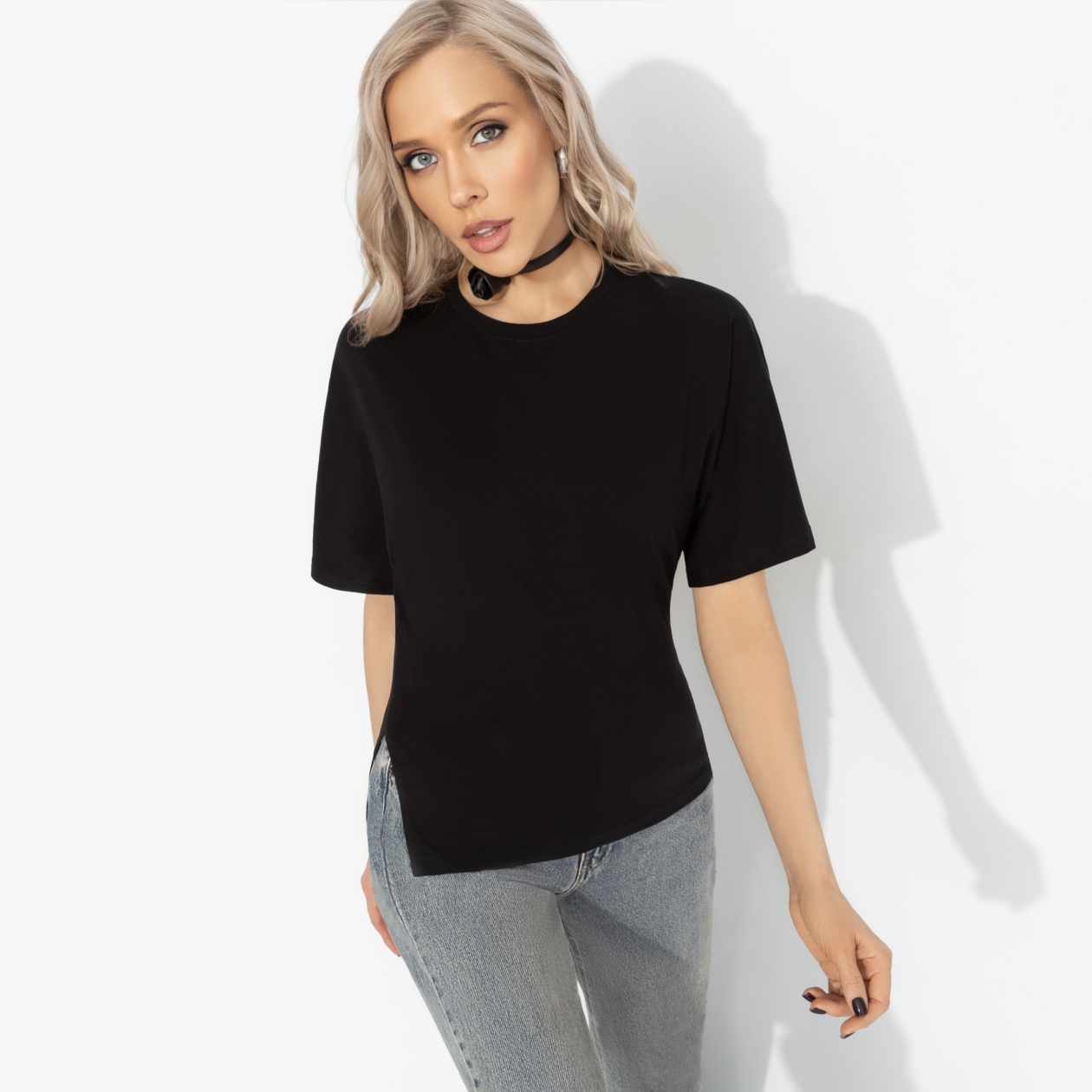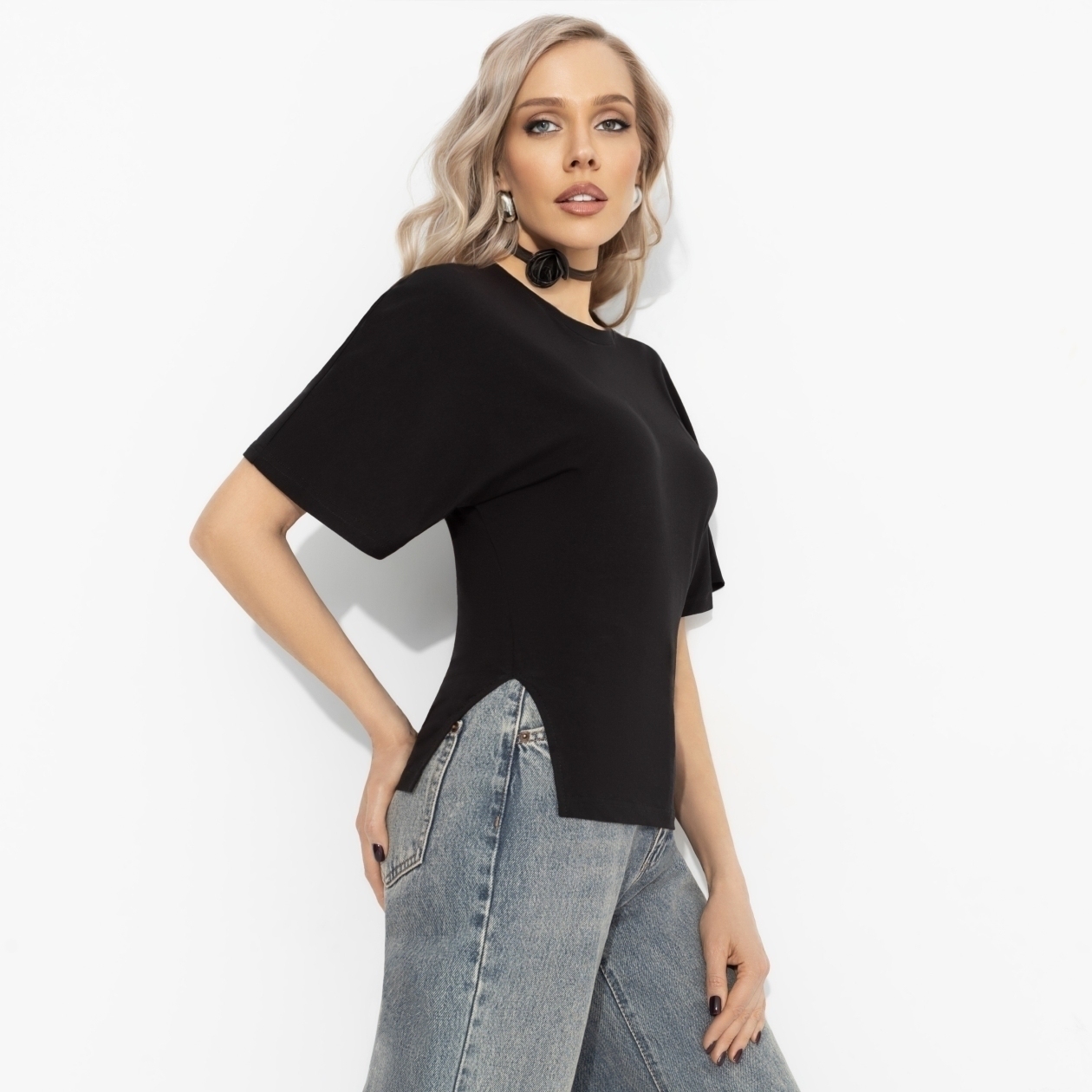 Задач больше, чем часов в сутках? Как только ты входишь в игру, дедлайны послушно выстраиваются в очередь, а базовый черный верх превращается в броню уверенной городской героини – и да, ты все успеешь. Футболка с высоким содержанием хлопка и нетривиальным ассиметричным дизайном. Мягкая, дышащая, хорошо держит форму и не теряет цвет при стирке. Приталенный крой с разрезом и слегка удлиненный рукав комфортно и бех лишних акцентов садятся по фигуре. Универсальная длина позволяет носить и навыпуск, и частично заправляя в джинсы или брюки.