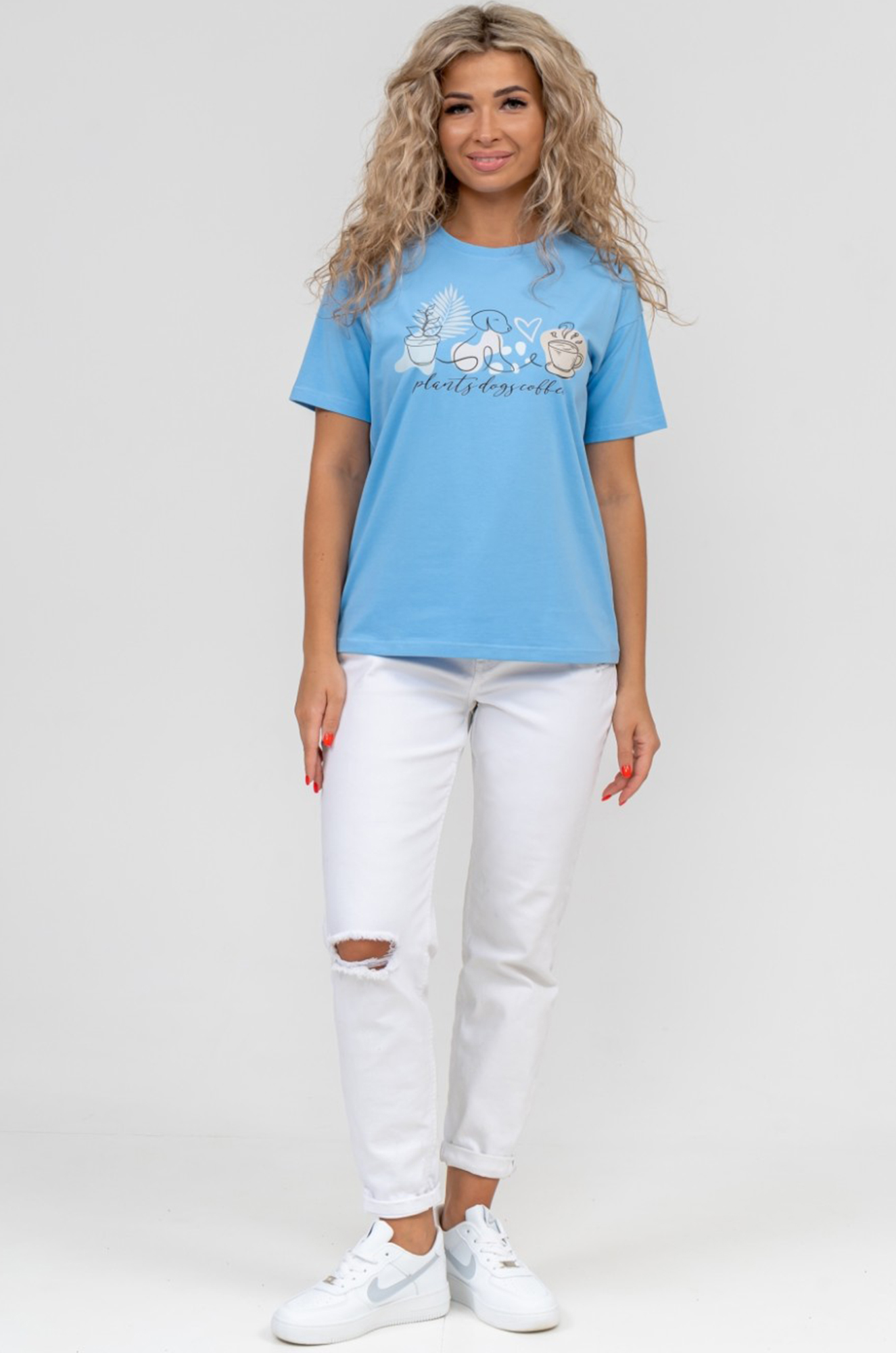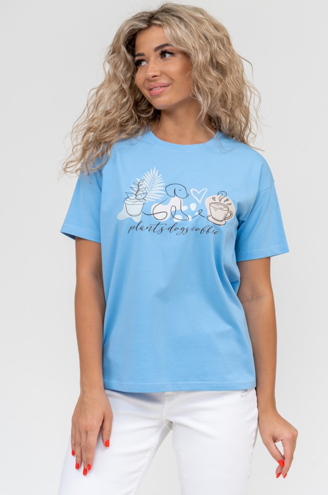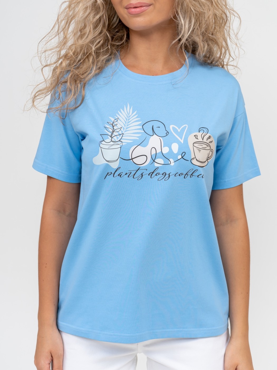 Нежная и очень симпатичная женская футболка с принтом. Модель в классическом крое, рукав втачной.