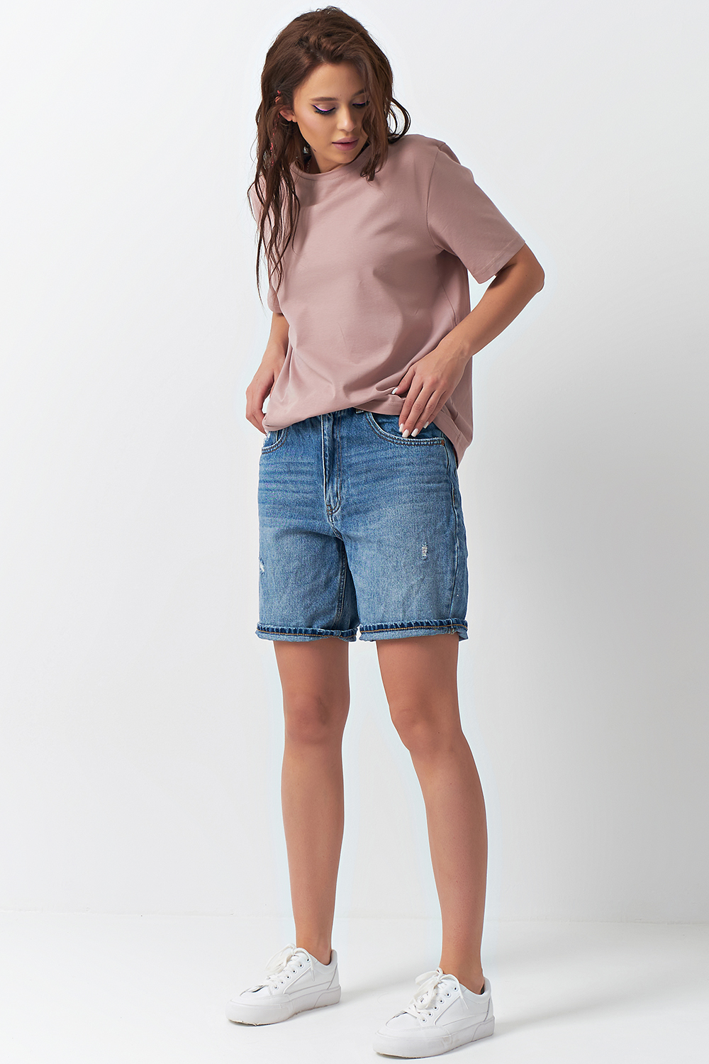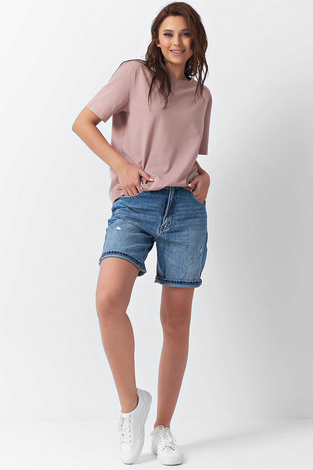 ст. цена1375руб.! Футболка базовая трикотажная оверсайз из хлопка пыльно-бежевая