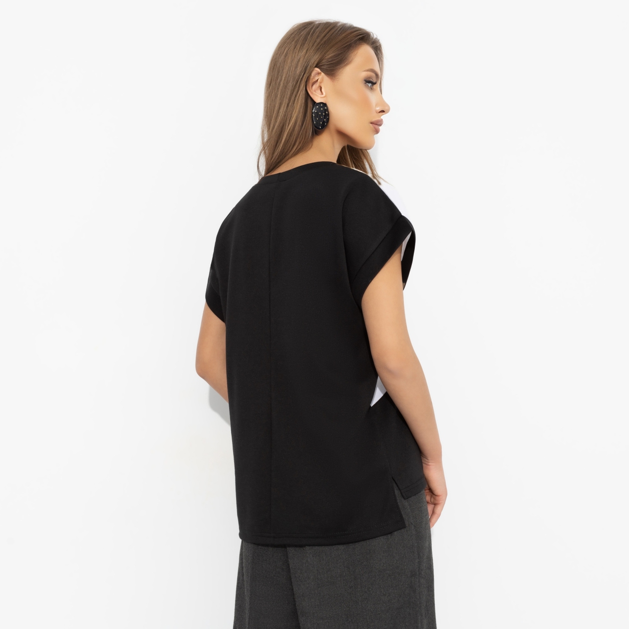 Когда геометрия диктует стиль и настроение! В такой футболке ощущаешь себя не просто собранной, а решающей интересную модную задачу. Пусть каждый день складывается в идеальную формулу вашего образа! Футболка из мягкого эластичного трикотажа с геометрическим декором и асимметричными линиями впишется в актуальный базовый гардероб. Декор из сетки объемный.