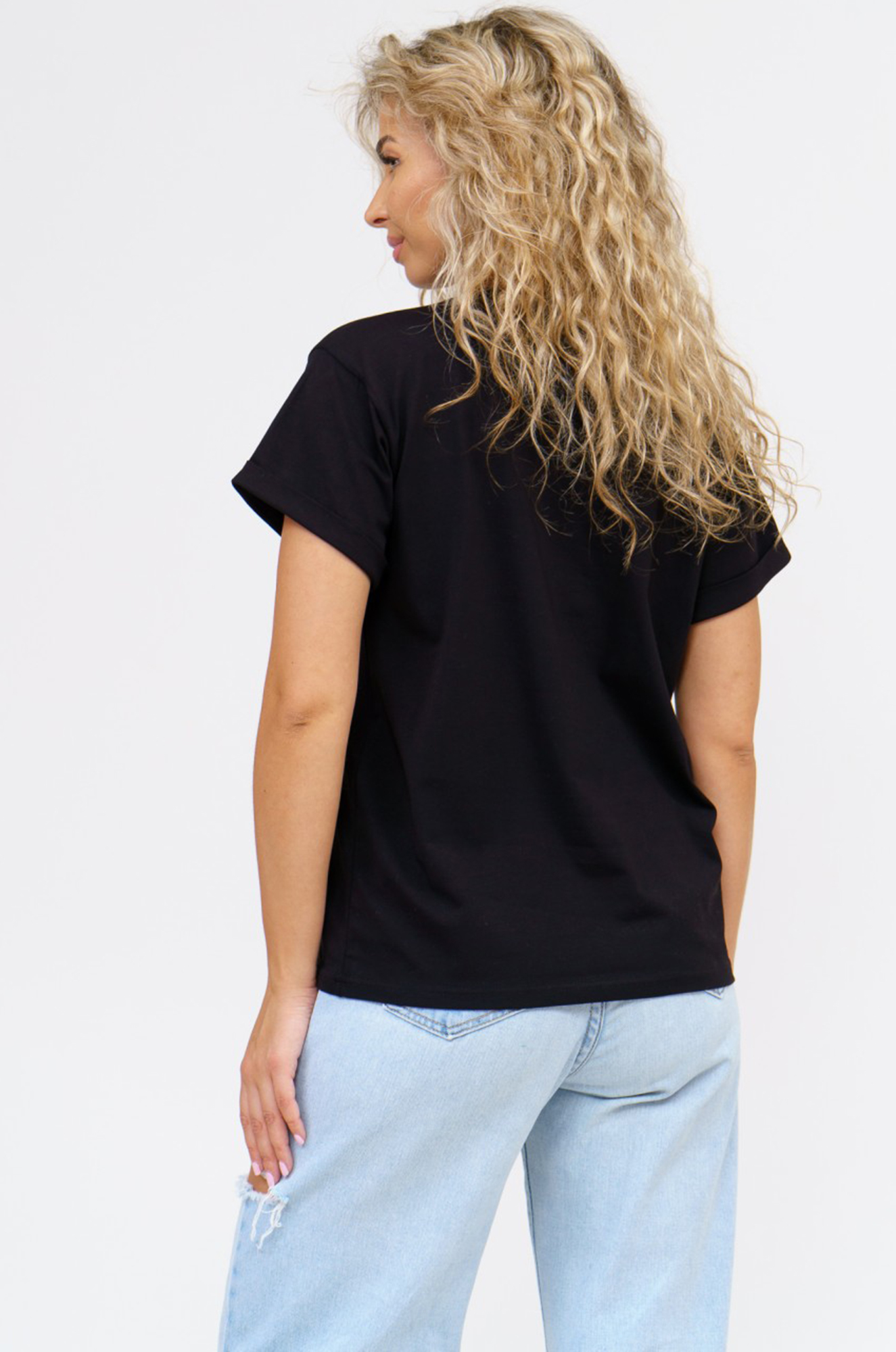 Женская хлопковая футболка на все случаи жизни! Модель классического прямого кроя, модный рукав с подворотом. Такая футболка подходит на любой тип фигуры, на любой возраст.