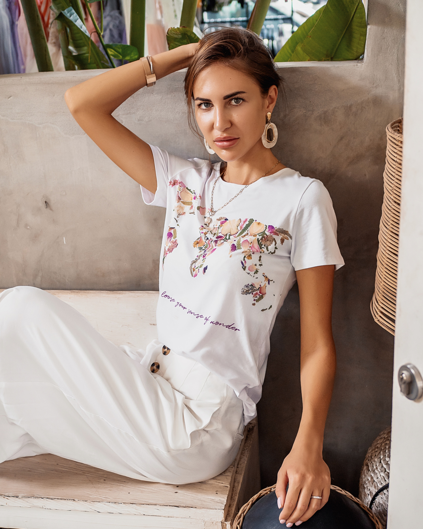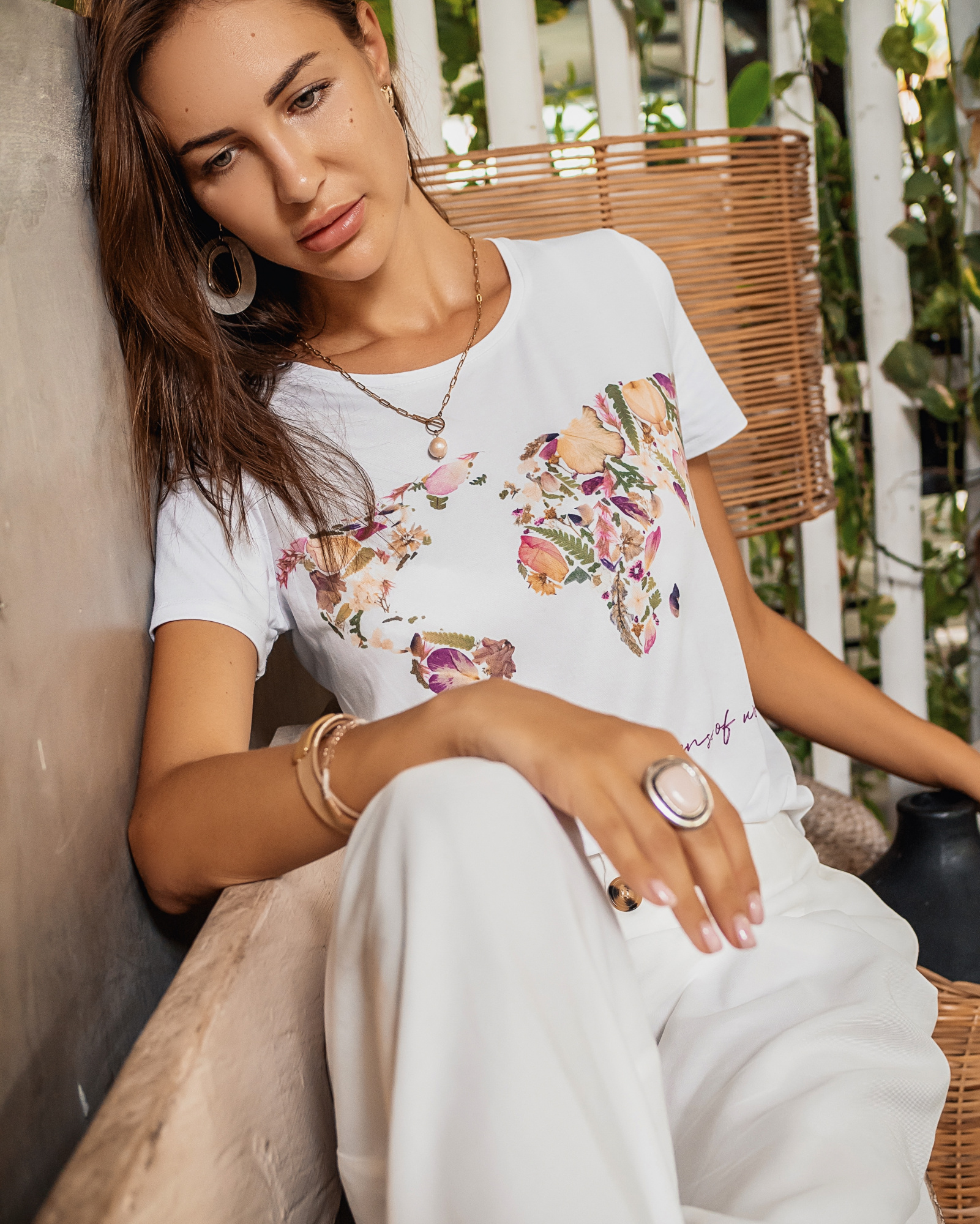Удобная, стильная и качественная - такой должна быть идеальная женская футболка. Эта модель прямого лаконичного кроя сшита из премиальной турецкой ткани. Спинка и рукава из хлопка, а полочка из вискозы - это позволяет принтам оставаться яркими и не выцветать. Неповторимые авторские рисунки, наши дизайнеры придумывают ориентируясь на мировые модные тенденции.