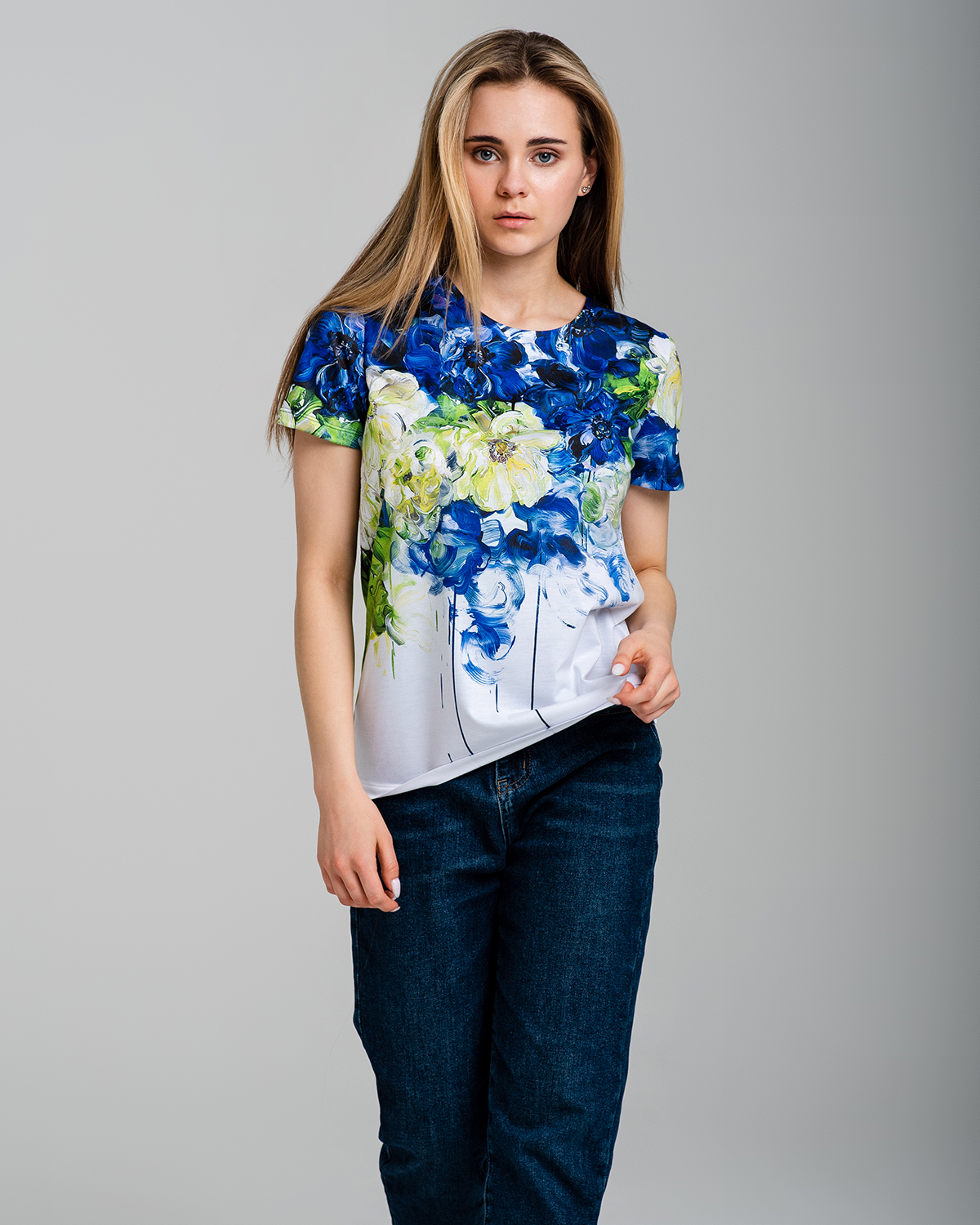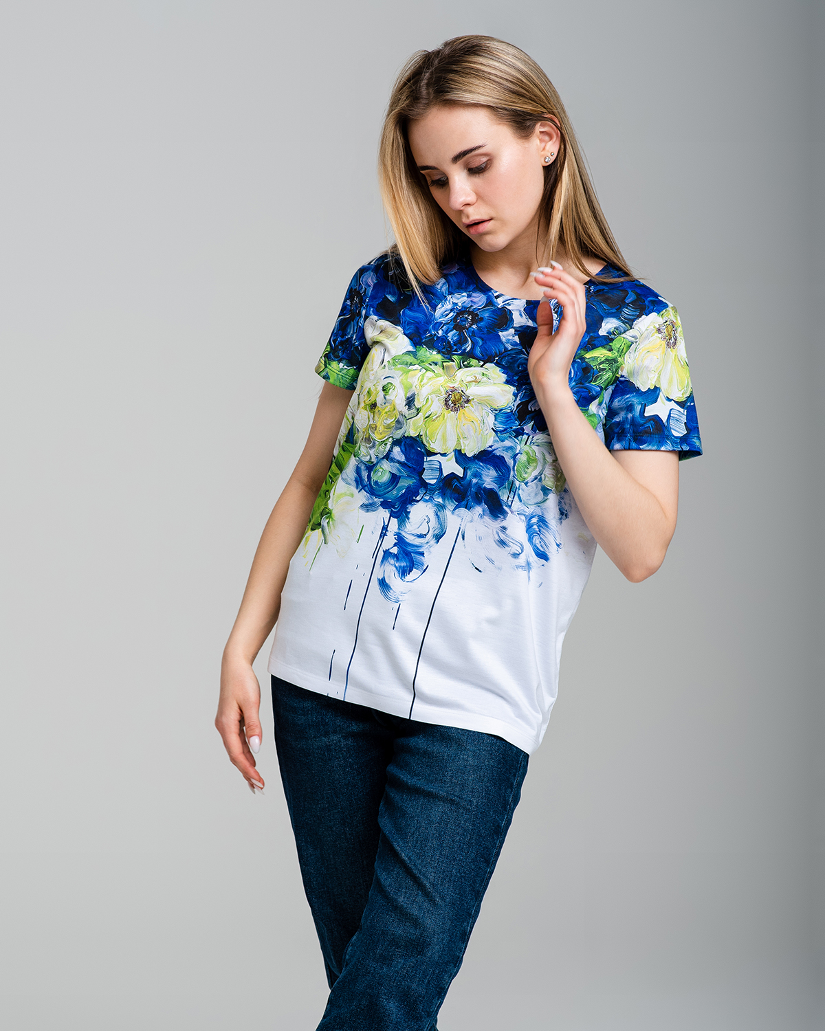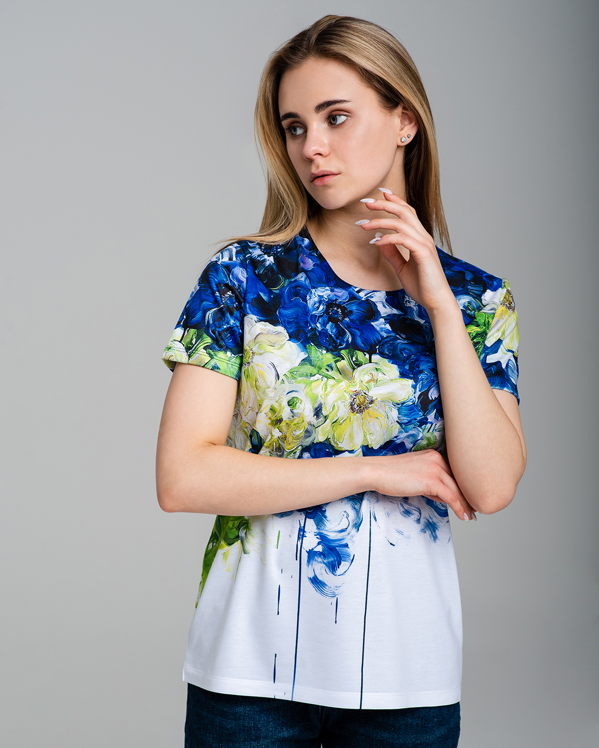 Таинственная, загадочная и сексуальная. Плавные цветовые переходы и сочные акценты делают эту футболку главной вещью гардероба. Турецкие ткани премиального качества - это мягкость и нежность в каждом прикосновении с кожей. Рисунок на футболке располагается спереди, сзади и на рукавах, что создает единую картину. Хочется рассматривать ее снова и снова.