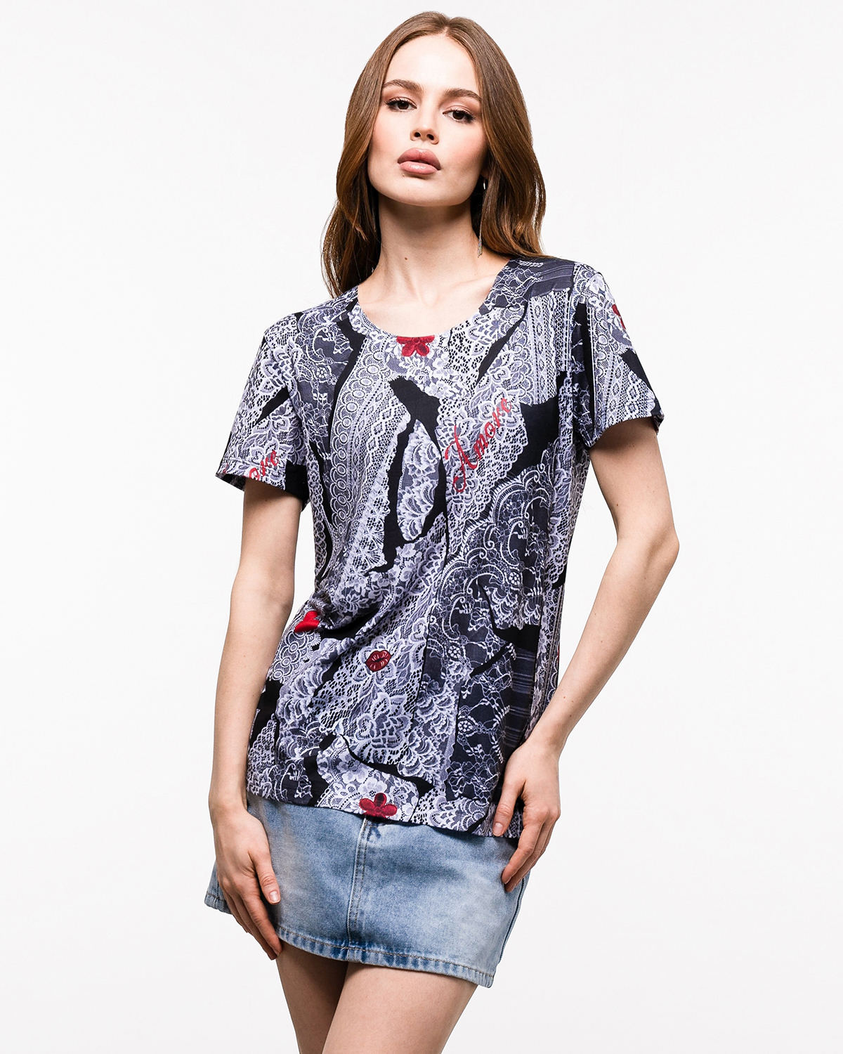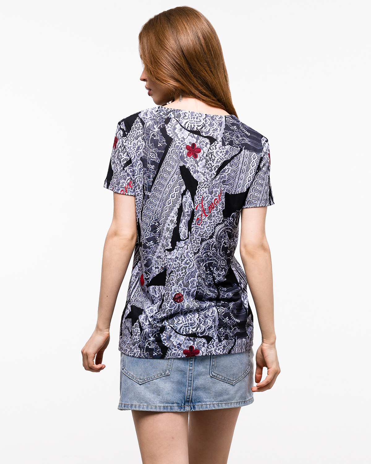 Таинственная, загадочная и сексуальная. Плавные цветовые переходы и сочные акценты делают эту футболку главной вещью гардероба. Турецкие ткани премиального качества - это мягкость и нежность в каждом прикосновении с кожей. Рисунок на футболке располагается спереди, сзади и на рукавах, что создает единую картину. Хочется рассматривать ее снова и снова.