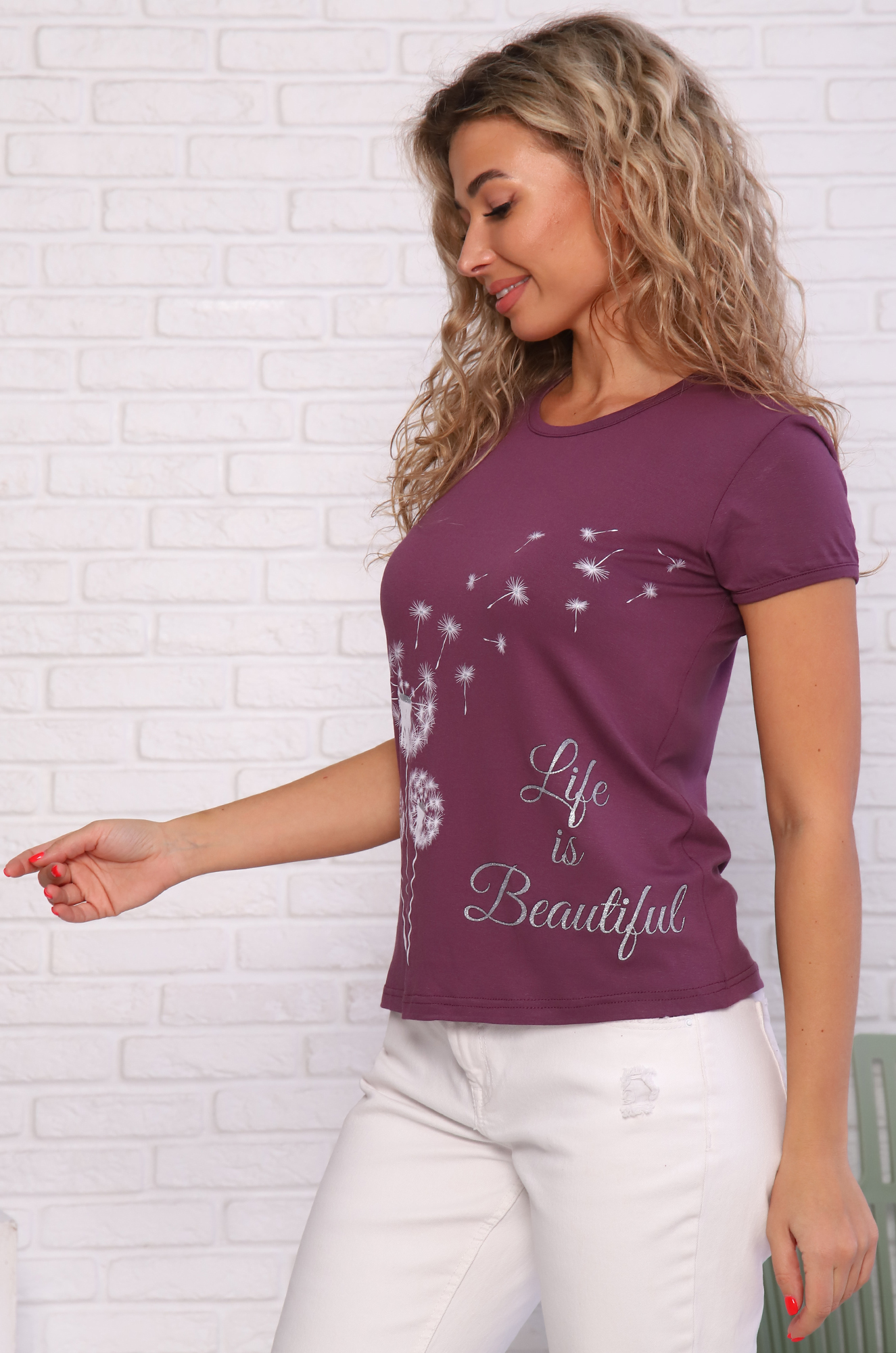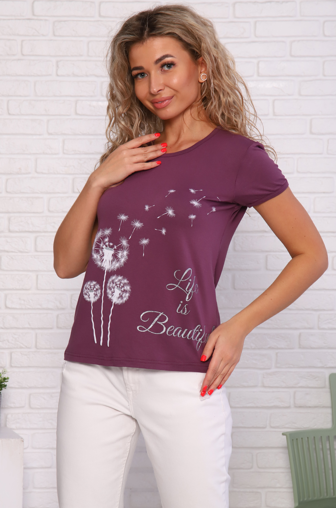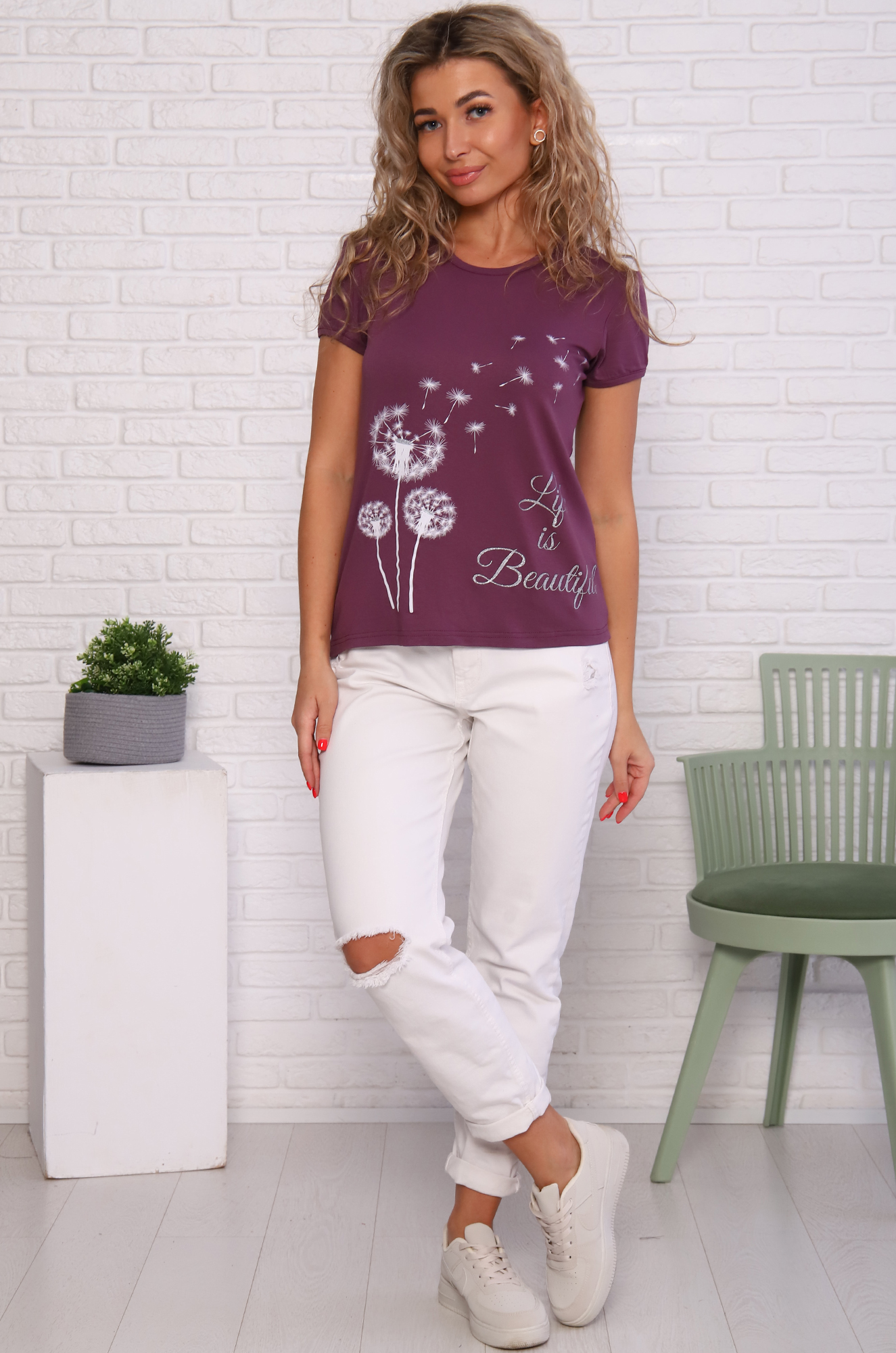 Обворожительно, грациозно и очень женственно смотрится футболка с изящным принтом "одуванчики".