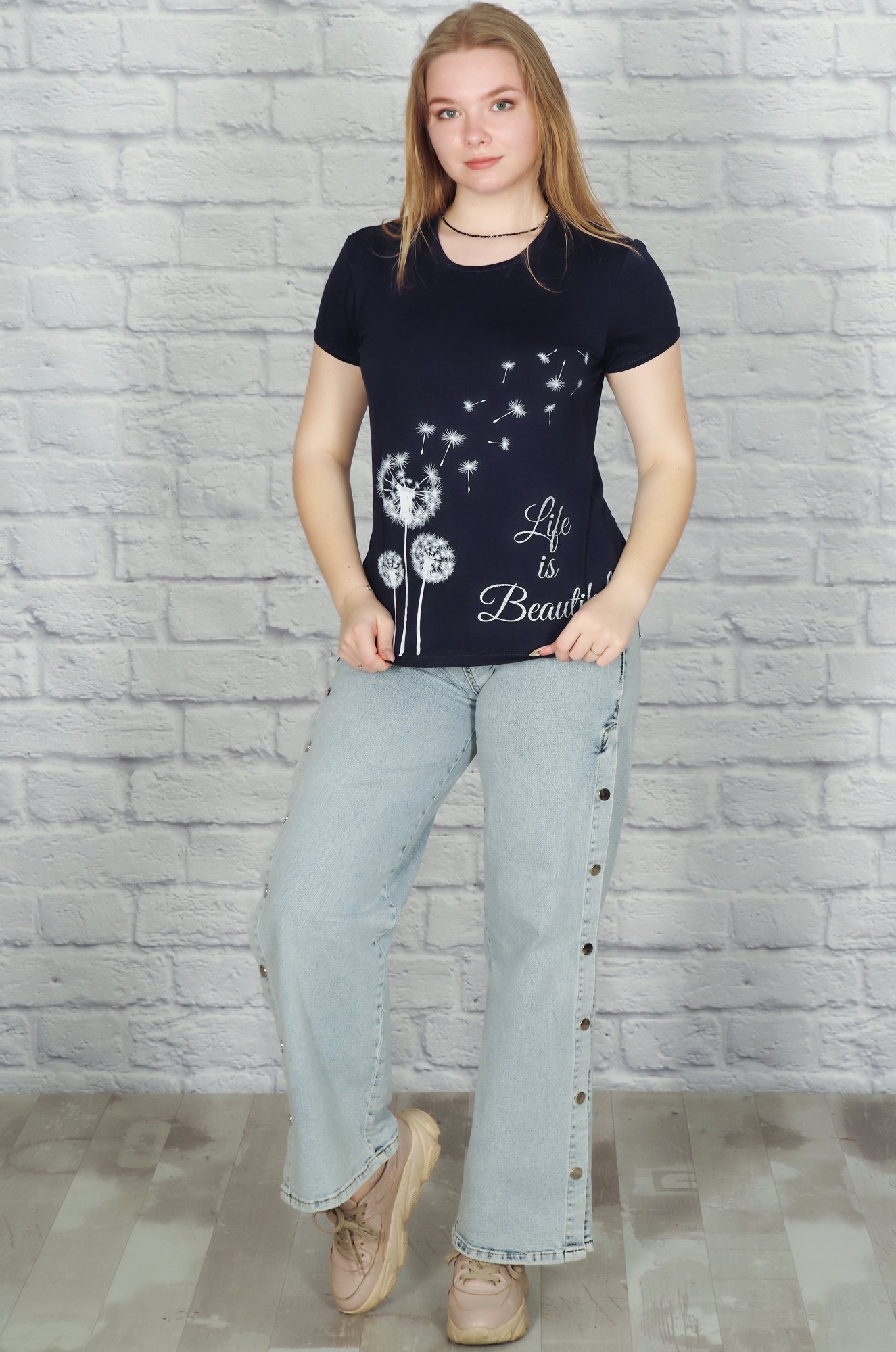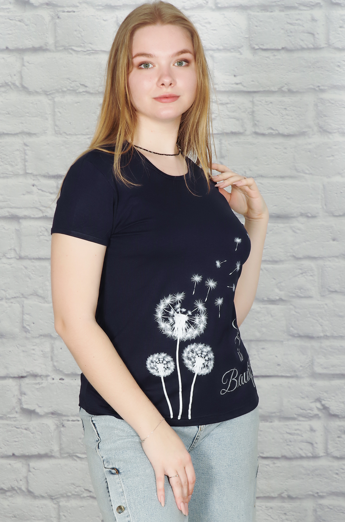 Обворожительно, грациозно и очень женственно смотрится футболка с изящным принтом "одуванчики".
