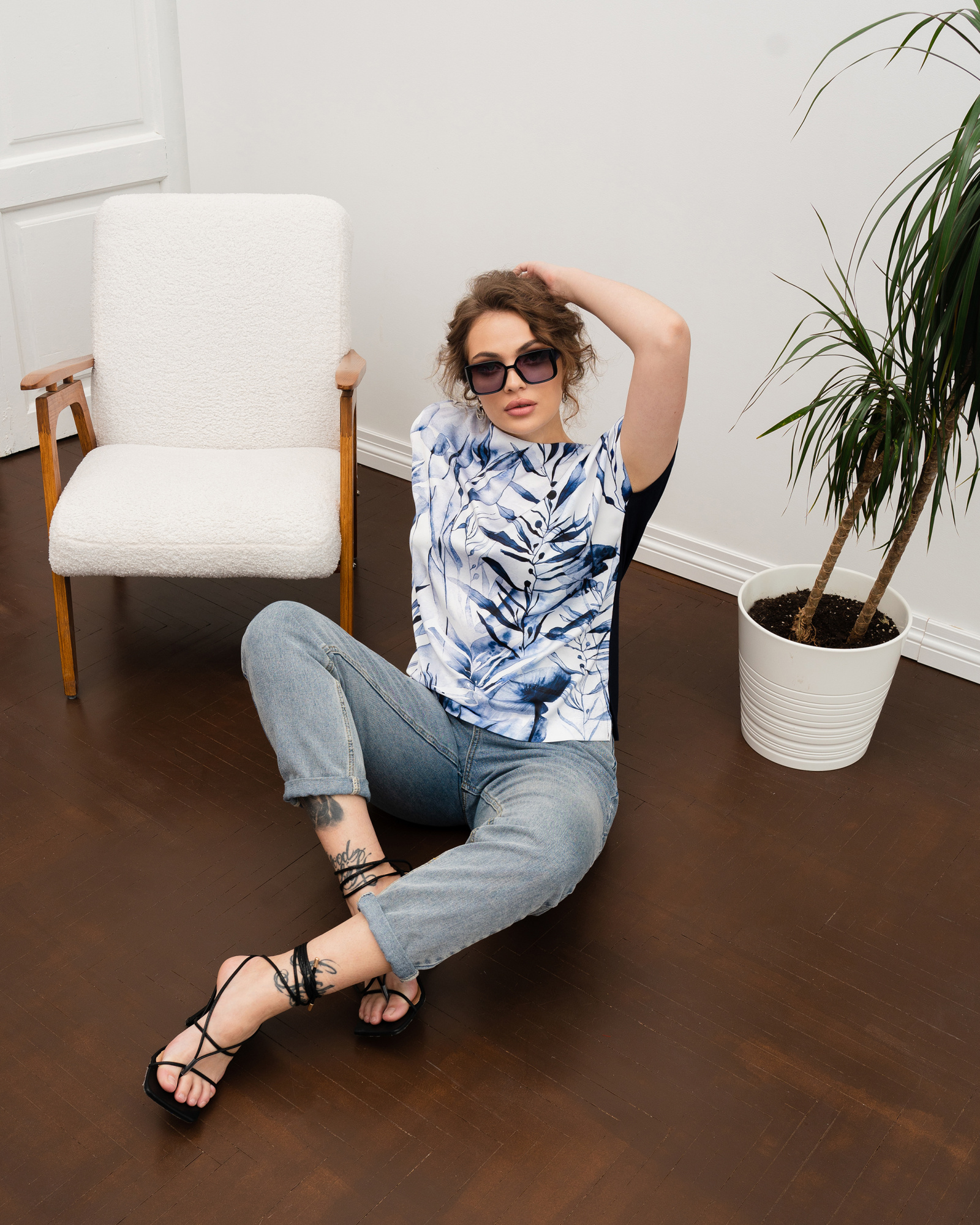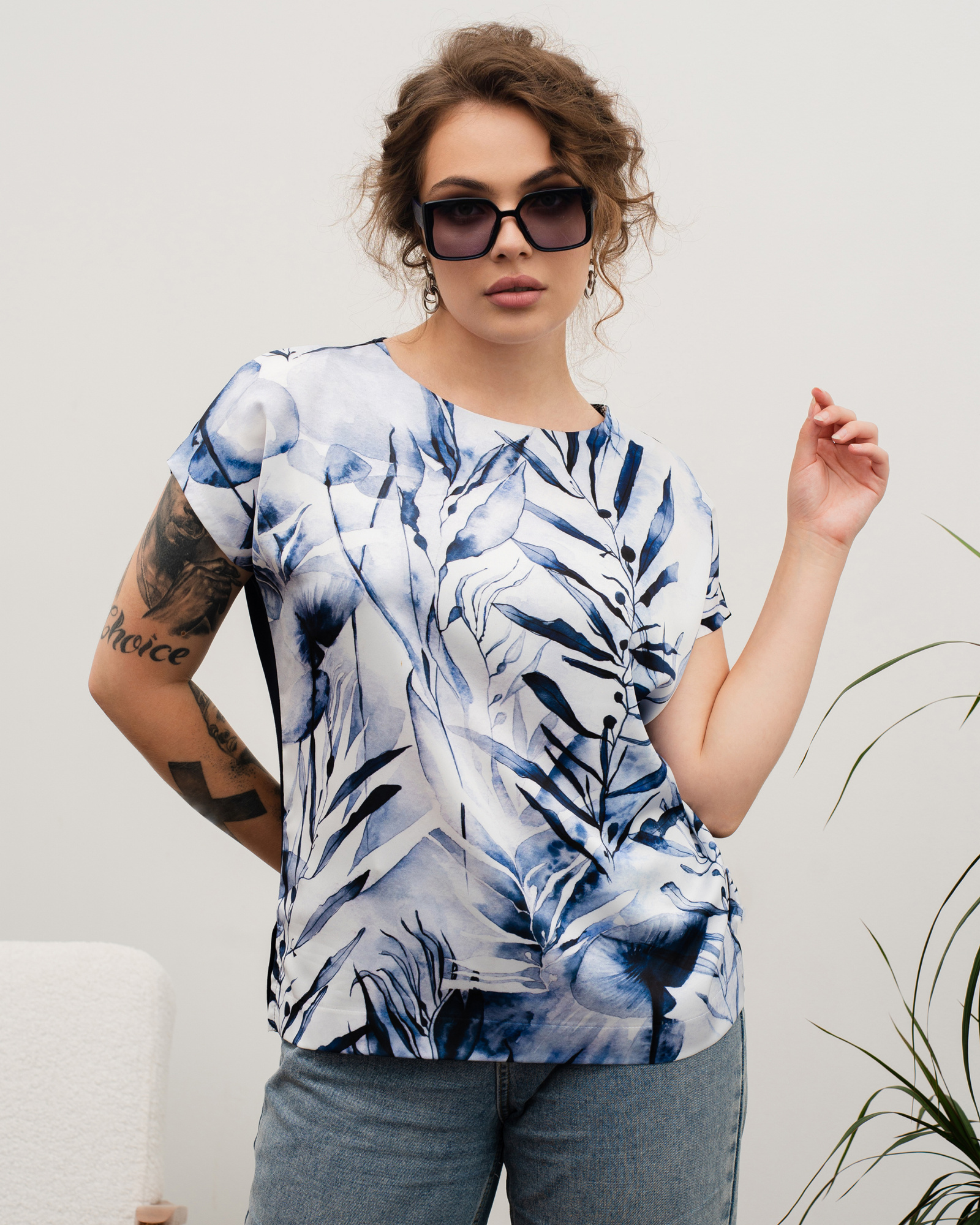 Спереди под принт используется шёлк «Армани». Это ткань, которая по внешнему виду похожа на натуральный шёлк. Но Армани намного проще в уходе, более упругая и плотная по структуре, а также хорошо удерживает краски рисунка в волокнах. Поэтому наши принты износостойкие, не крошатся, не линяют и остаются яркими на протяжении нескольких сезонов.