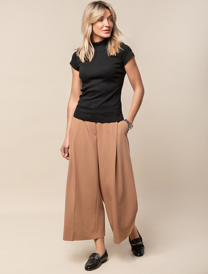 Футболка с воротом стойка выполнена из фактурного трикотажа в рубчик. Модель идеально сидит по фигуре не сковывая движения. Хлопковый трикотаж поддерживает оптимальную температуру тела, поэтому в изделии будет комфортно в течении всего дня. Наличие эластана в составе гарантирует формоустойчивости. Базовая модель впишется в любой гардероб и подойдет для офисного дресс-кода. 95%Хлопок 5%ПУ