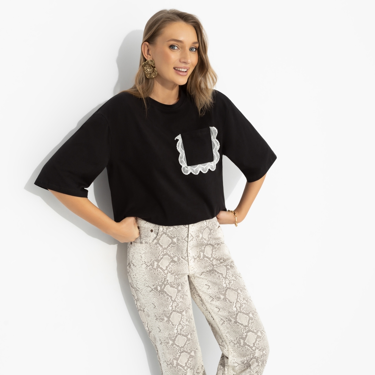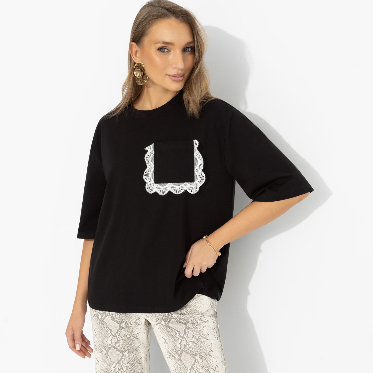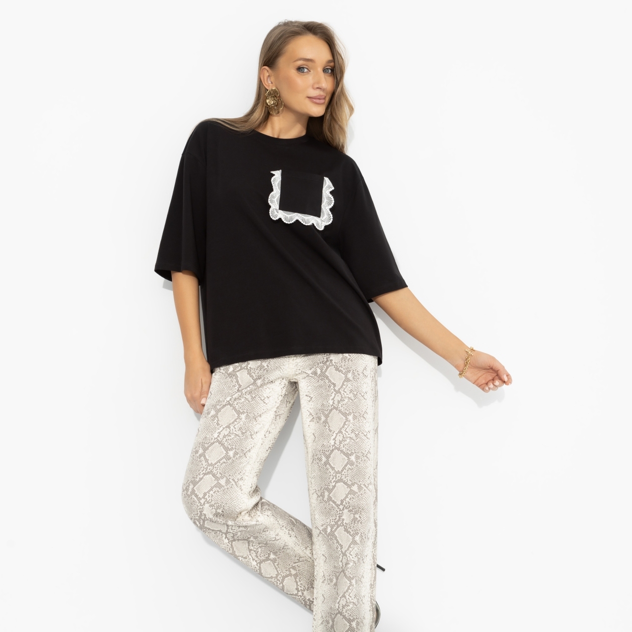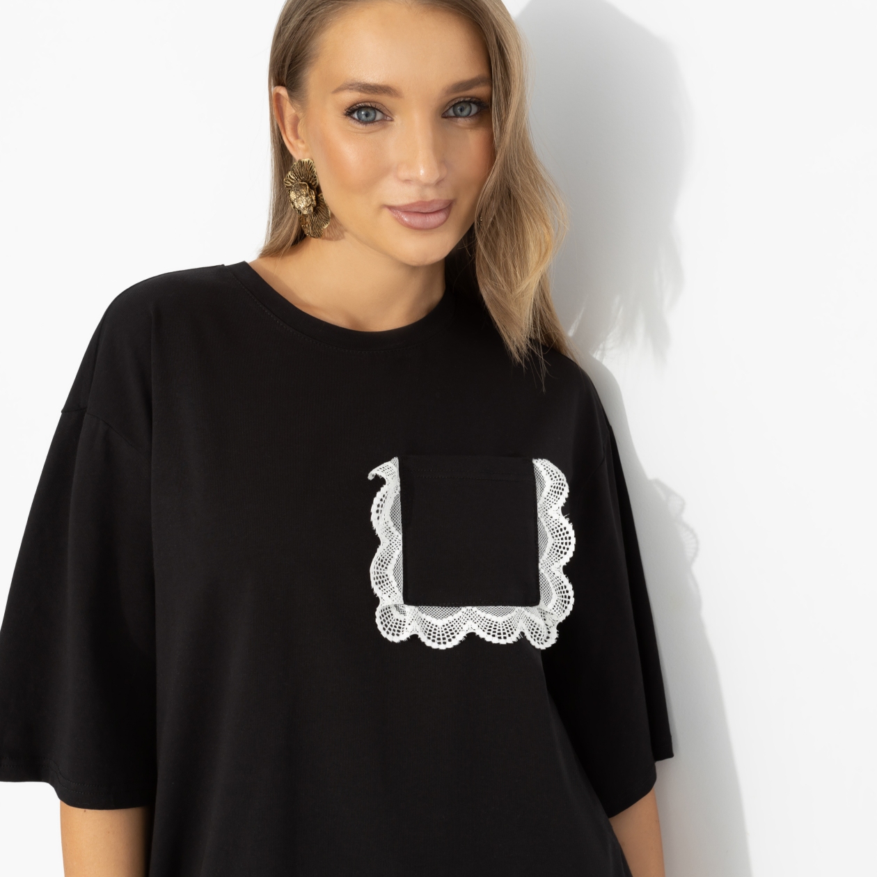 Чёрный цвет – всегда безопасная ставка, а кружевной акцент выводит твой образ из режима «просто» в режим «сохранить в избранное». Свободный крой, мягкая линия плеч и комфортная длина дают ту самую расслабленность, которую так любит стилизовать Марианна Елисеева. Надела – и ты на стильной волне.