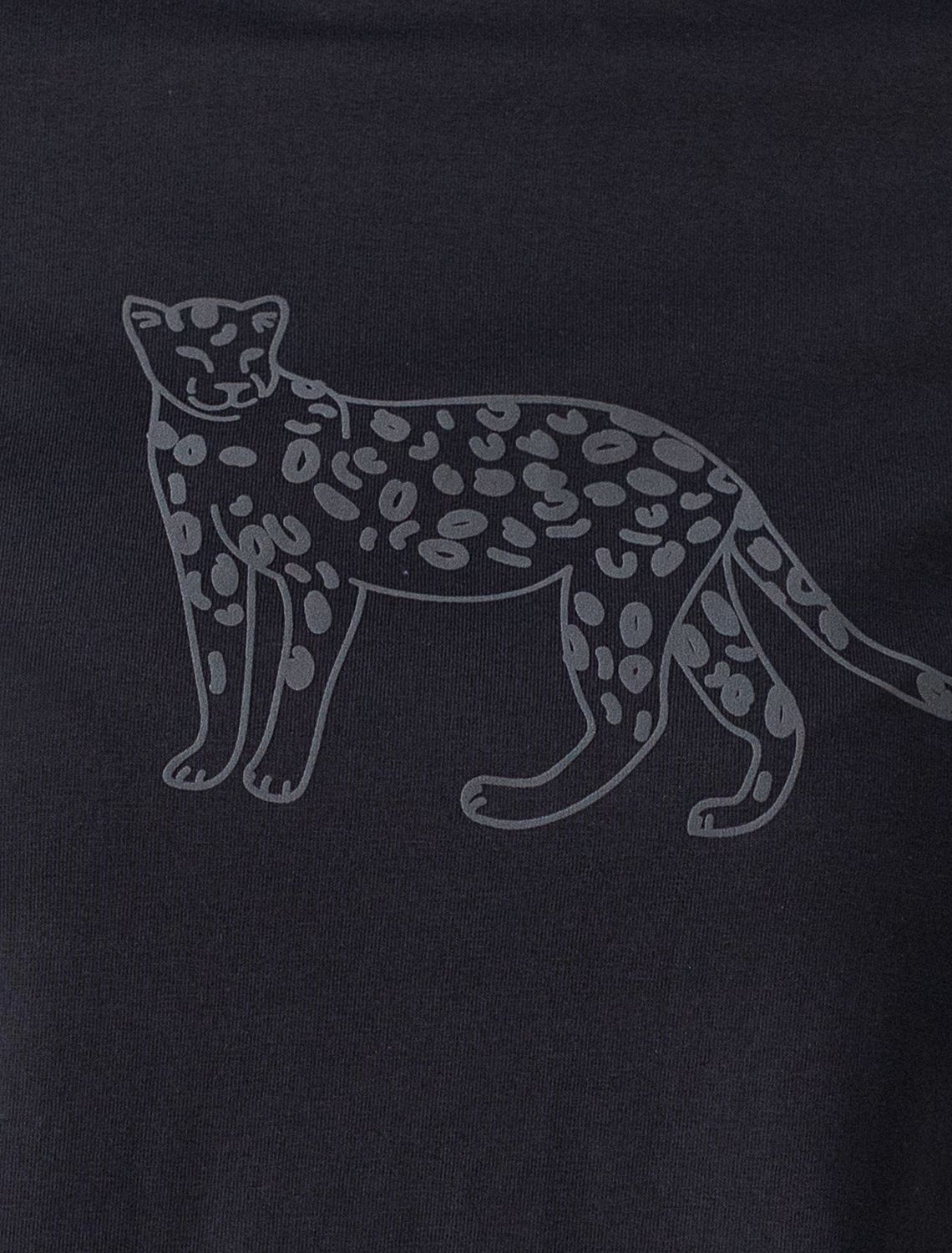 Футболка выполнена из премиального хлопка.Принт "леопард" нанесен фактурными красками с устойчивым покрытием. Наличие эластана в составе гарантирует комфорт и формоустойчивость. Изделие дополнено фирменным металлическим логотипом бренда.