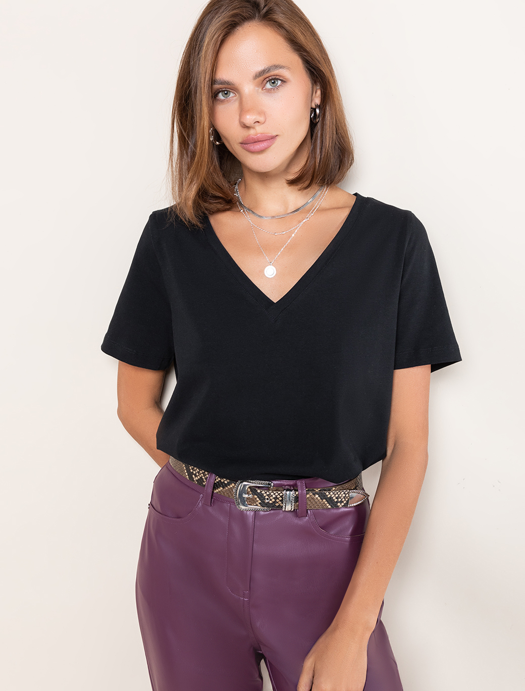 Базовая однотонная футболка из премиального хлопка с треугольным вырезом. Добавление ПУ в состав изделия способствует эластичности и формоустойчивости. Самое высокое качество хлопковых волокон обеспечивает комфорт даже в жаркое время года. Идеально держит форму и сохраняет внешний вид в течение долговременного использования. Удобная форма для любого гардероба.