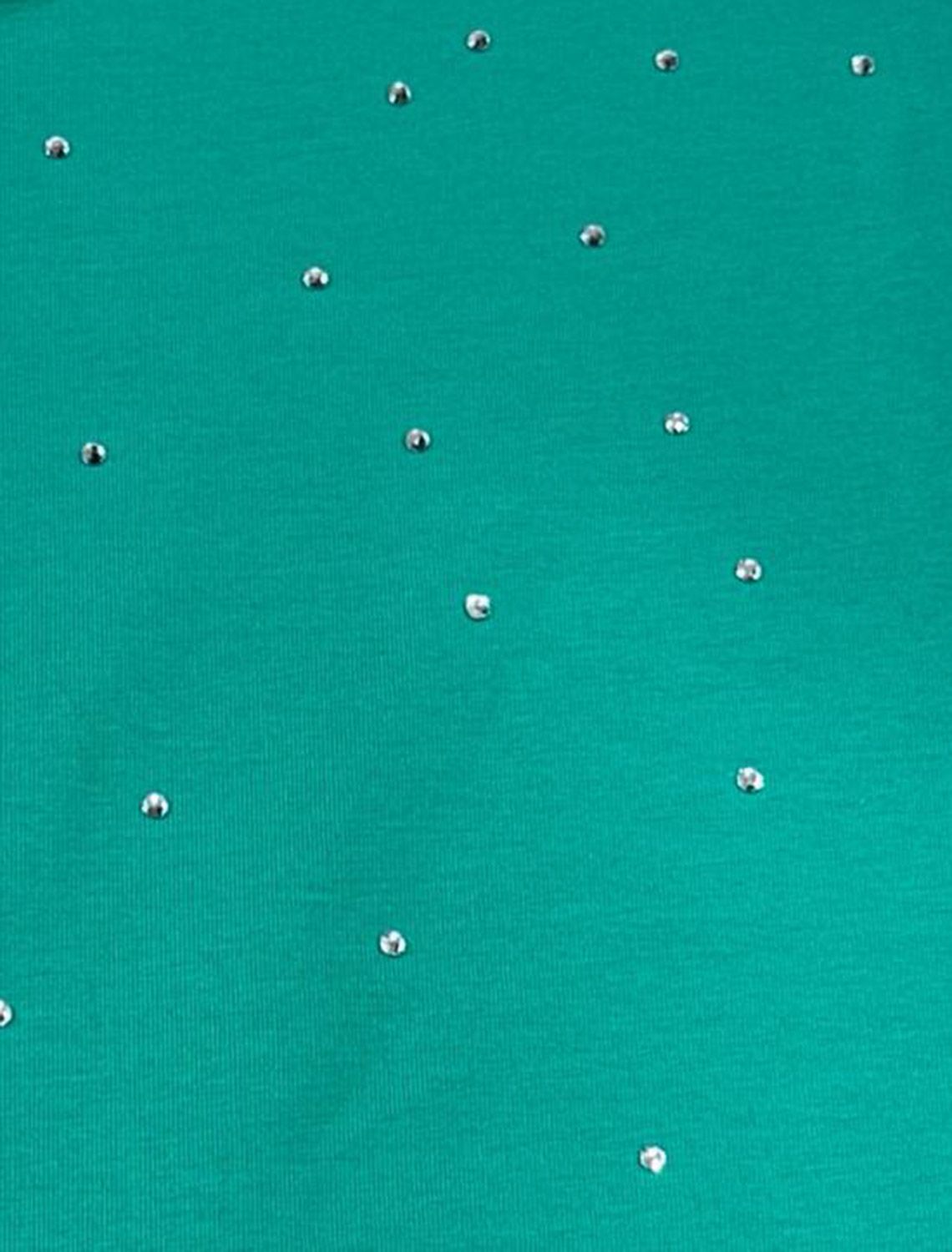 Футболка выполнена из премиального хлопка. Лаконичный принт нанесен россыпью сияющих страз, надежно закрепленных на изделии. Наличие эластана в составе гарантирует комфорт и формоустойчивость. Изделие дополнено фирменным металлическим логотипом бренда.
