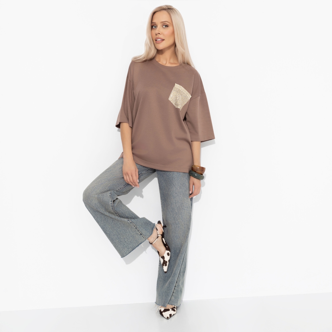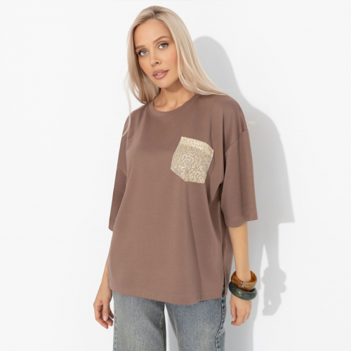 Футболка ЧАРУТТИ — твой секретный ключ к безупречному образу для любого события. Мерцающие пайетки, играющие на свету, моментально превращают простой силуэт в элегантный наряд, готовый к вечерним приключениям. Идеально с джинсами для брутального шика или с юбкой-миди для нежного романтичного образа. Футболка удлиненная свободного кроя. Акцентная деталь – карман по передней стороне изделия из сетки с пайетками. Пайетки прошиты. Изделие хорошо смотрится в заправленном виде и навыпуск.