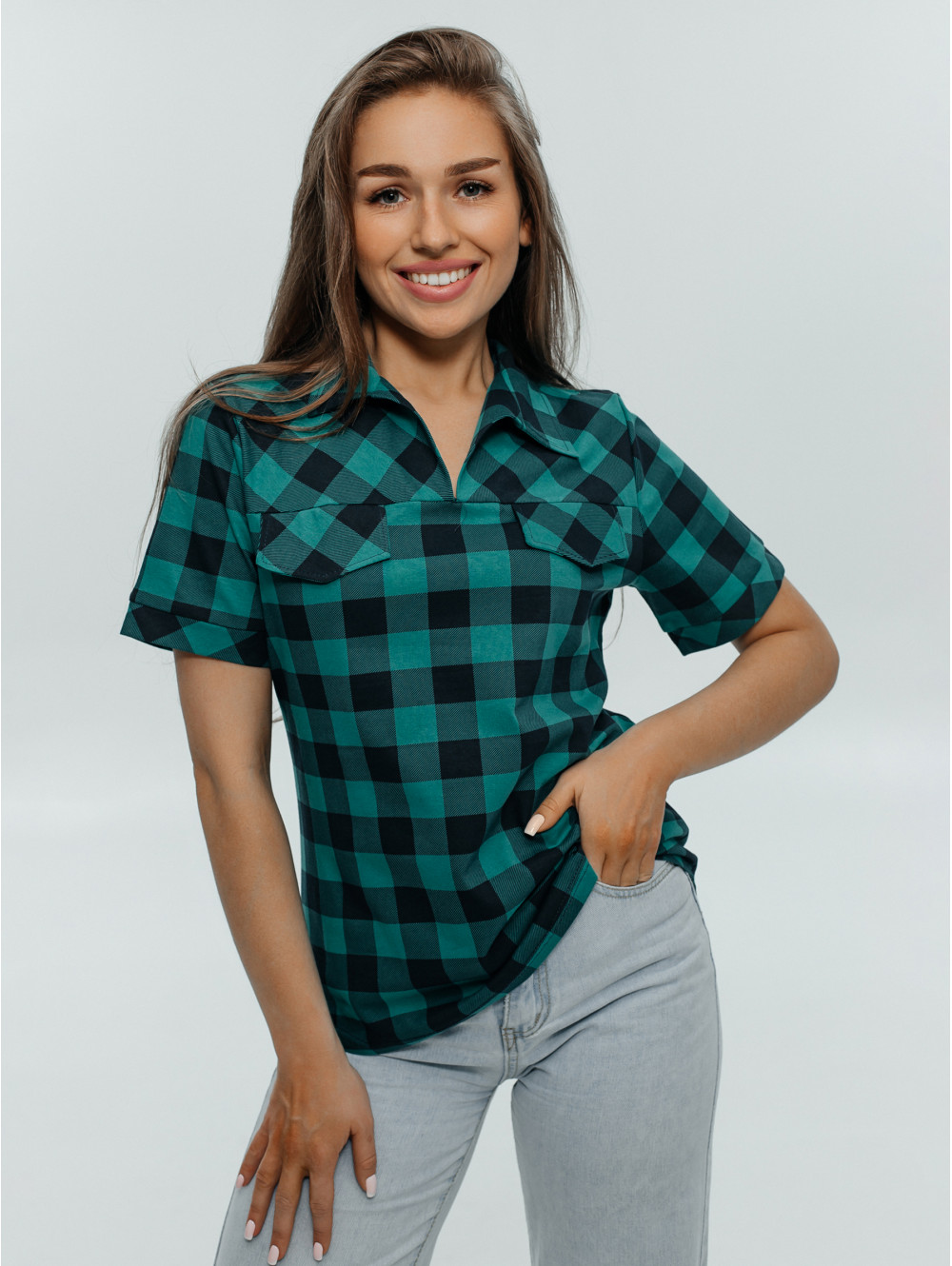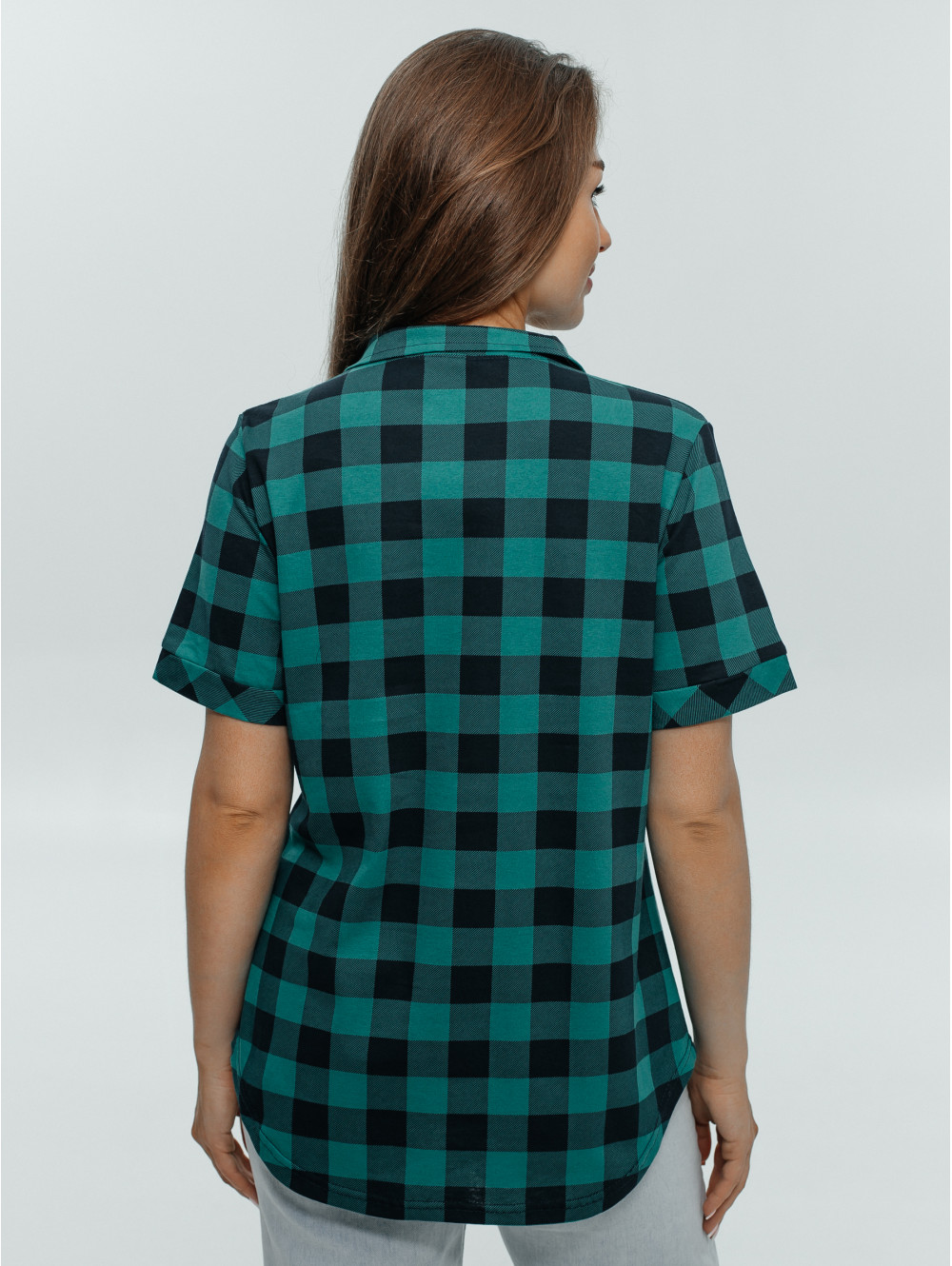 Футболка женская в клетку, с коротким рукавом, на полочке имитация карманов. Низ округлой формы с перепадом длины. Футболка является неотъемлемой частью женского гардероба. Вы будете великолепны в представленной модели, стильная и модная  футболка обязана быть в гардеробе каждой дамы.