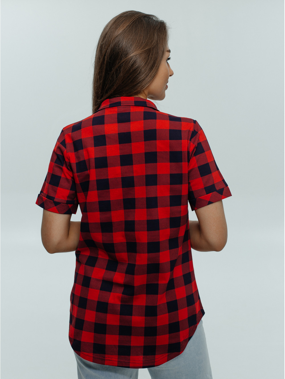 Футболка женская в клетку, с коротким рукавом, на полочке имитация карманов. Низ округлой формы с перепадом длины. Футболка является неотъемлемой частью женского гардероба. Вы будете великолепны в представленной модели, стильная и модная  футболка обязана быть в гардеробе каждой дамы.