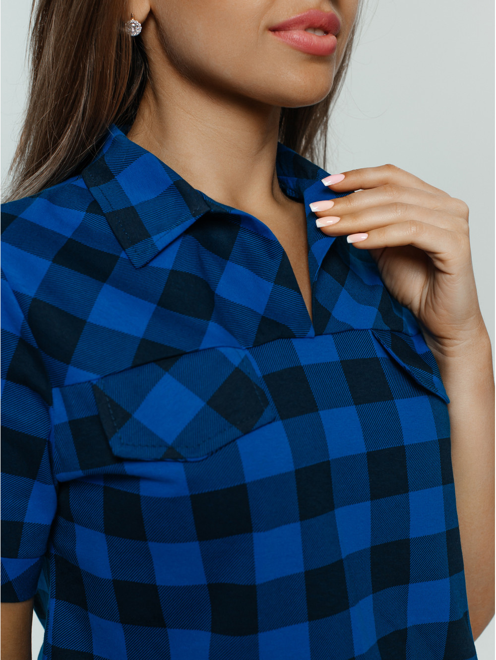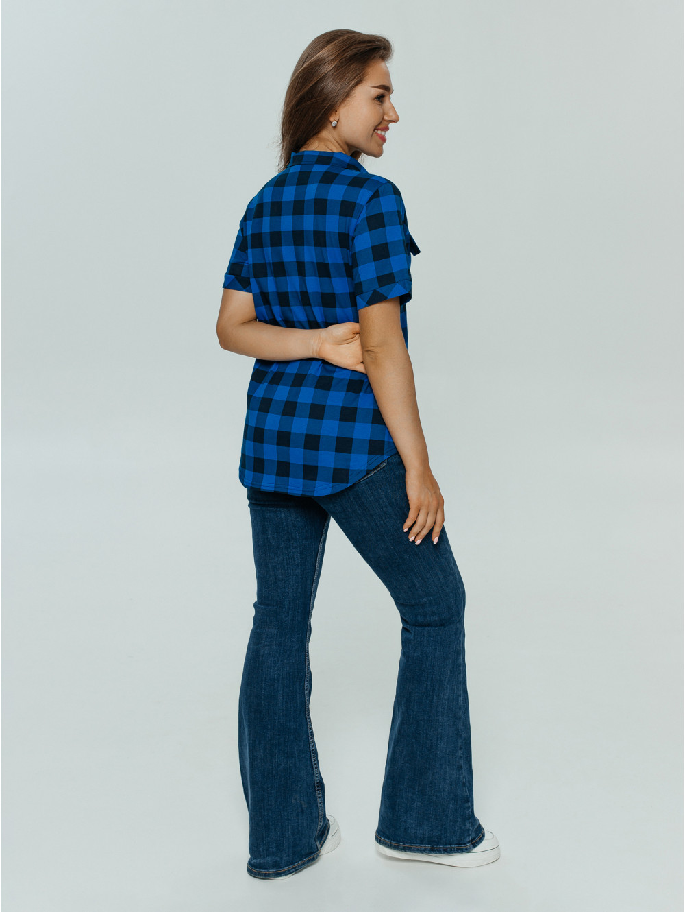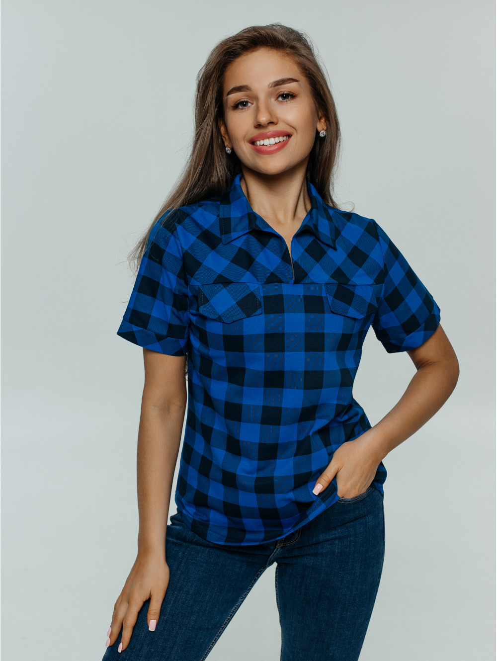 Футболка женская в клетку, с коротким рукавом, на полочке имитация карманов. Низ округлой формы с перепадом длины. Футболка является неотъемлемой частью женского гардероба. Вы будете великолепны в представленной модели, стильная и модная  футболка обязана быть в гардеробе каждой дамы.