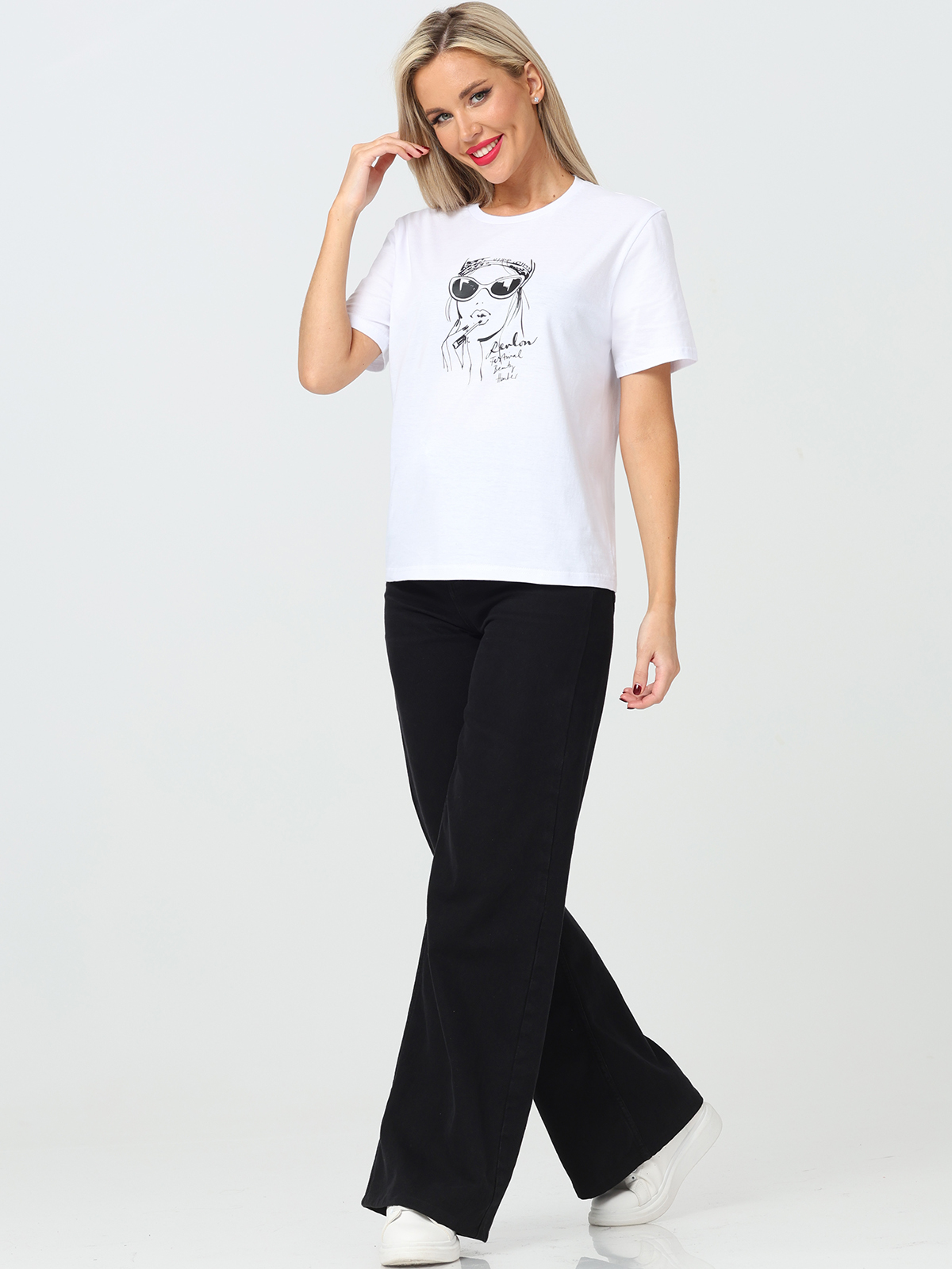 Белая футболка - это классический элемент гардероба, который подходит для любого сезона. Изготовлена из качественного трикотажного материала, обеспечивающего комфорт и удобство в повседневном использовании. Округлый вырез горловины делает её универсальной и подходящей для различных стилей одежды. Короткие рукава обеспечивают свободу движения и дополнительный комфорт в жаркую погоду. Термопечать добавляет оригинальности и стиля этой футболке. Легкий уход - бережная стирка при 30 градусах - делает её удобным и практичным выбором для ежедневного использования.