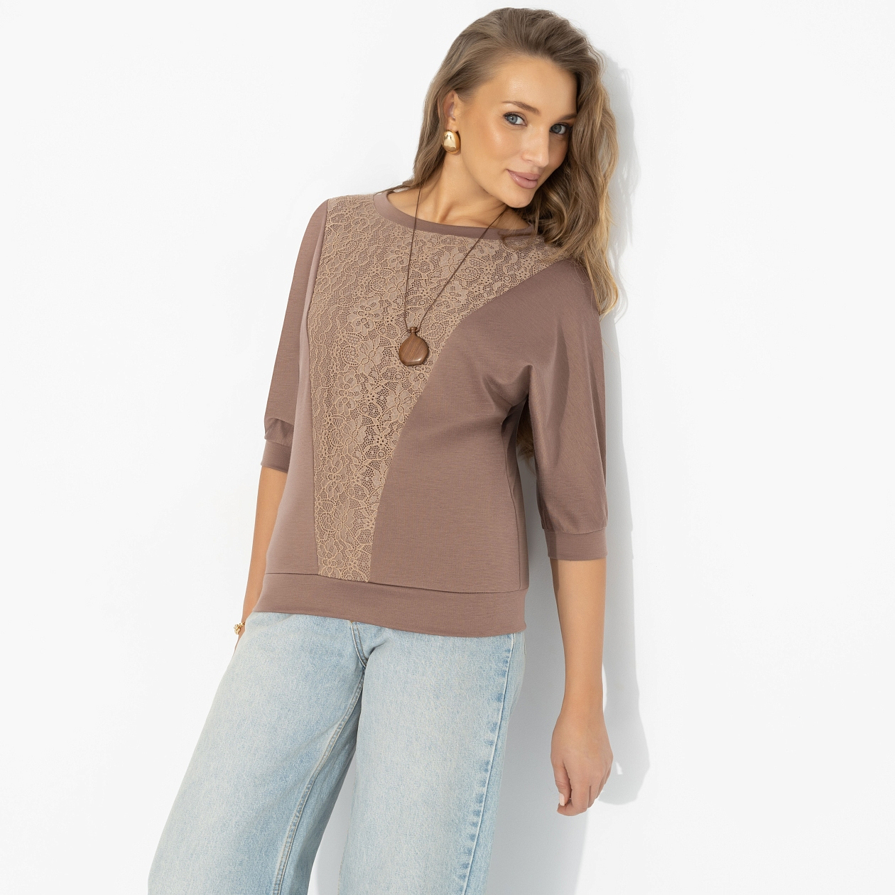 Это не я не такая, это вы обычные... Если тебе откликается эта цитата, то точно понравится футболка, которая играет по правилам базового гардероба. Мягкий трикотаж расслабленно ложится по фигуре, свободный крой с приспущенной линией плеч создает эффект беззаботного шика. Контрастная кружевная вставка по центру вытягивает силуэт и добавляет деликатную чувственность. Носи ее с джинсами, брюками, юбками – и чувствуй себя по-новому каждый день.