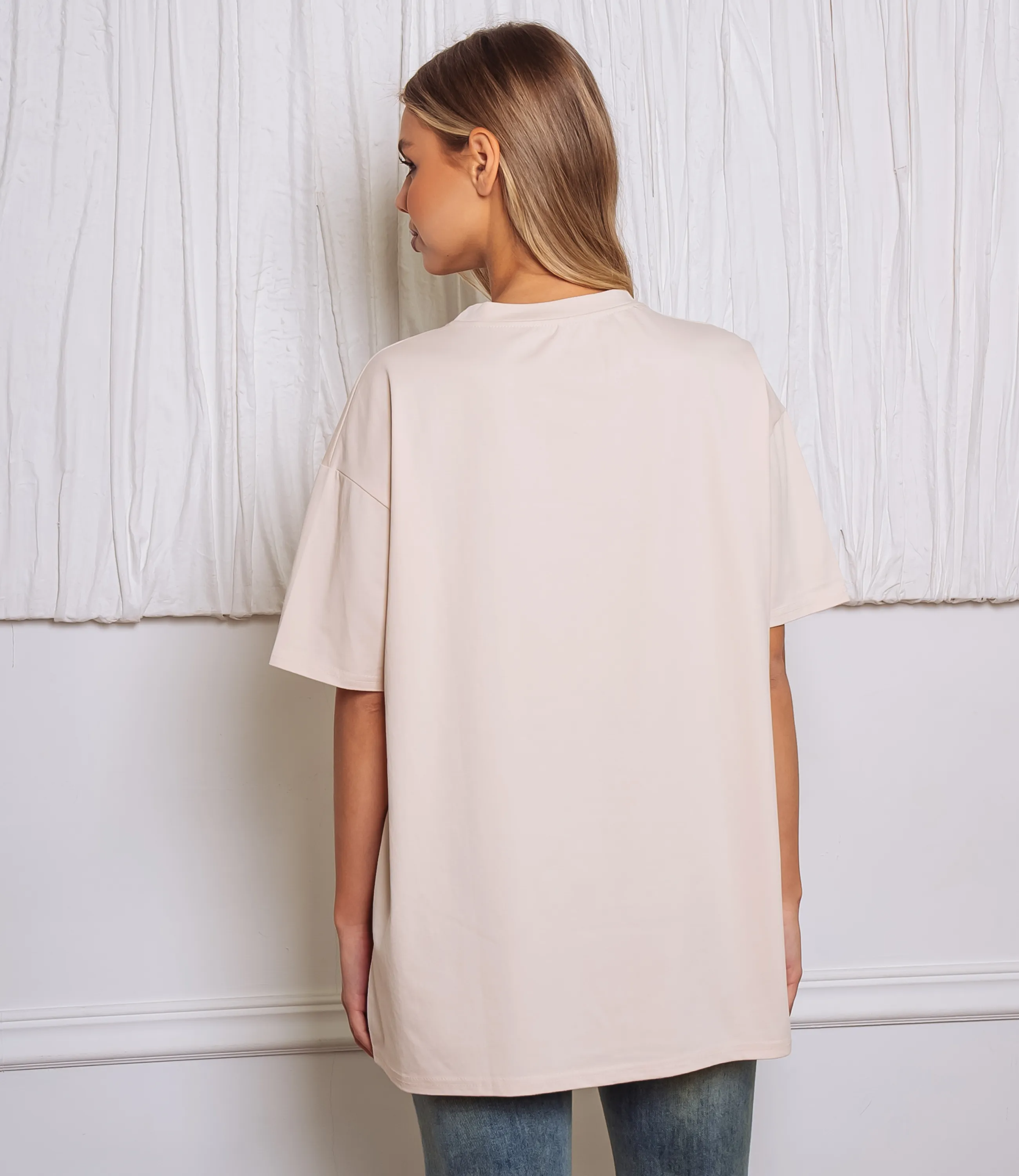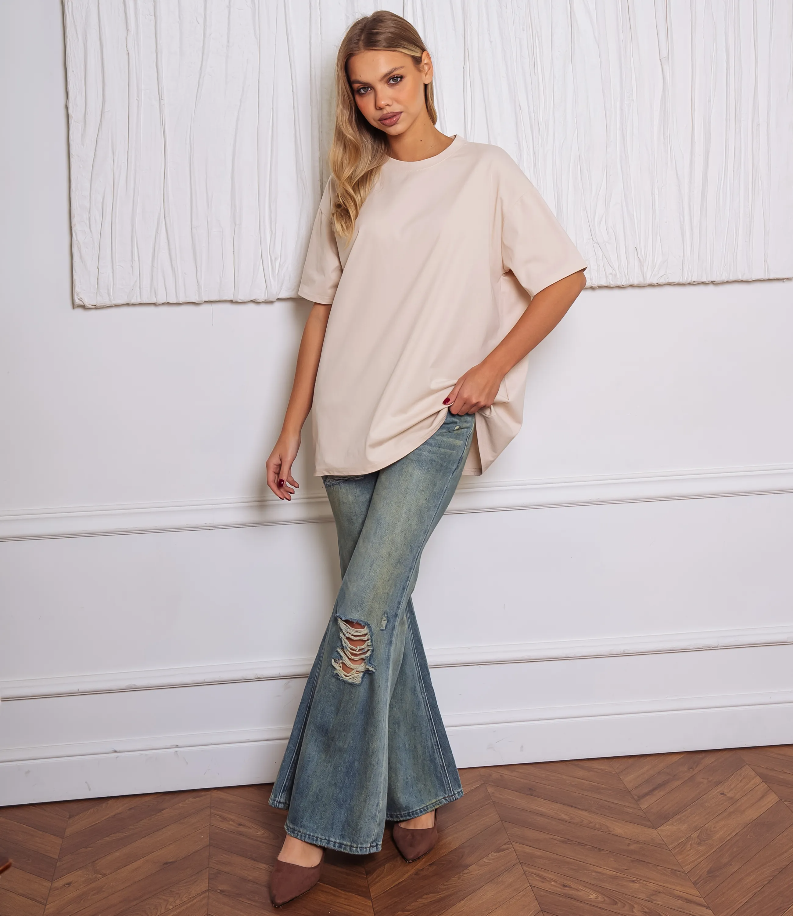 Эта футболка — прекрасный выбор для вашего магазина, предлагая стильный и универсальный дизайн, который станет отличным дополнением к гардеробу ваших клиентов. Свободный стиль, который обеспечивает комфорт и свободу движений. Широкие рукава и удлиненная форма делают футболку универсальной для различных нарядов. Классический круглый вырез горловины, который подходит практически всем типам фигур. Выполненная из 23% хлопка, 27% полиэстера, футболка обеспечивает отличное качество и приятные тактильные ощущения. Независимо от сезона, она станет любимым элементом в гардеробе ваших клиентов. На странице сайта доступна таблица размеров, что позволит вашим покупателям легко найти подходящий вариант. Установленная цена делает эту футболку доступной для широкой аудитории, что обеспечит вам высокий уровень продаж. Рост модели: 168, параметры: 89-63-90.