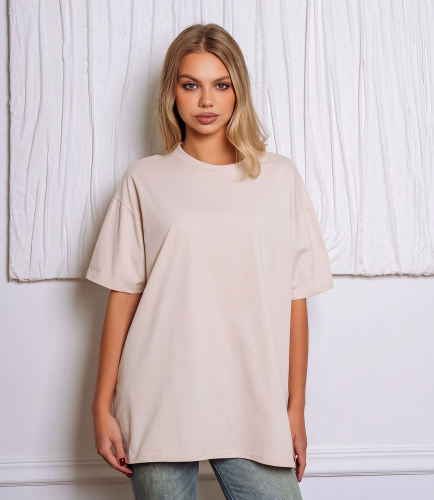 Эта футболка — прекрасный выбор для вашего магазина, предлагая стильный и универсальный дизайн, который станет отличным дополнением к гардеробу ваших клиентов. Свободный стиль, который обеспечивает комфорт и свободу движений. Широкие рукава и удлиненная форма делают футболку универсальной для различных нарядов. Классический круглый вырез горловины, который подходит практически всем типам фигур. Выполненная из 23% хлопка, 27% полиэстера, футболка обеспечивает отличное качество и приятные тактильные ощущения. Независимо от сезона, она станет любимым элементом в гардеробе ваших клиентов. На странице сайта доступна таблица размеров, что позволит вашим покупателям легко найти подходящий вариант. Установленная цена делает эту футболку доступной для широкой аудитории, что обеспечит вам высокий уровень продаж. Рост модели: 168, параметры: 89-63-90.