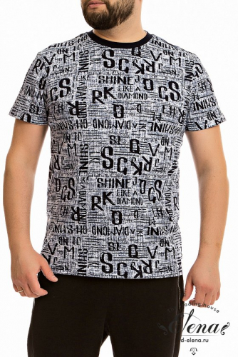 Мужская футболка выполнена из хлопкового полотна с набивным рисунком. Покрой свободный, горловина с круглым вырезом.