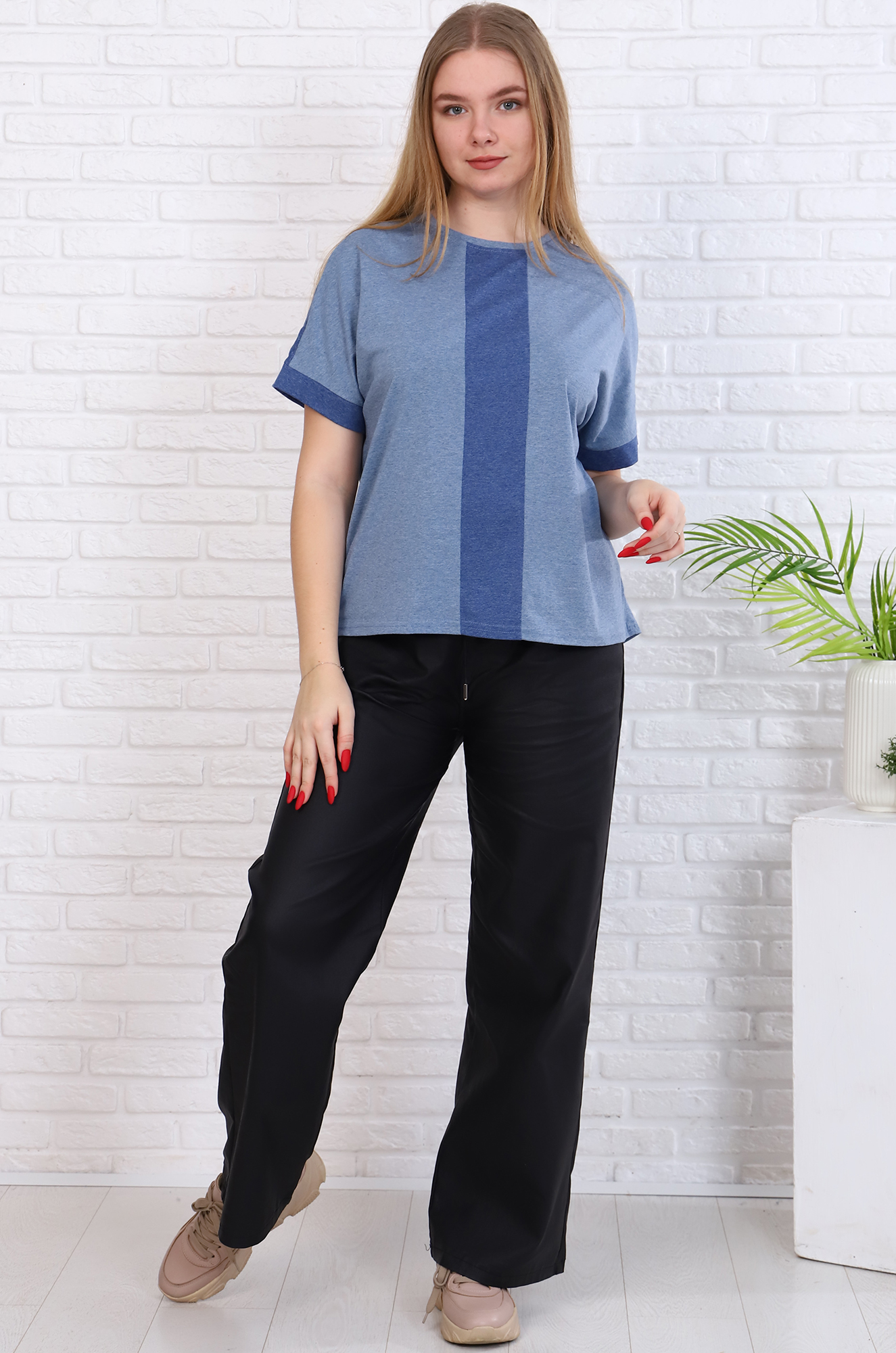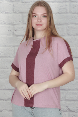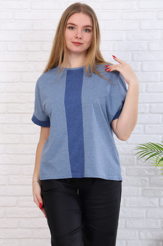 Симпатичная женская футболка с оригинальными контрастными вставками. Модель в стиле "оверсайз", рукав цельнокроенный.