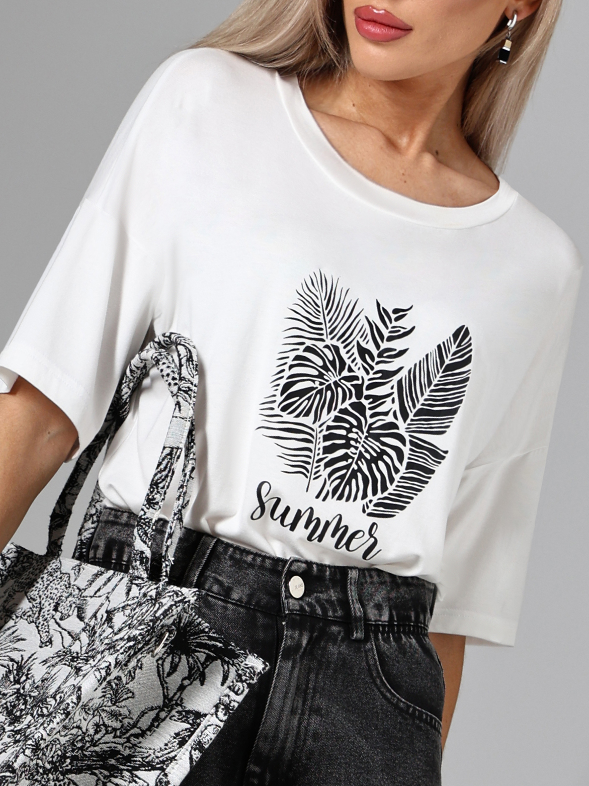 Футболка - это классический элемент гардероба, который подходит для любого сезона. Изготовлена из качественного трикотажного материала, обеспечивающего комфорт и удобство в повседневном использовании. Округлый вырез горловины делает её универсальной и подходящей для различных стилей одежды. Короткие рукава обеспечивают свободу движения и дополнительный комфорт в жаркую погоду. Термопечать добавляет оригинальности и стиля этой футболке. Легкий уход - бережная стирка при 30 градусах - делает её удобным и практичным выбором для ежедневного использования.