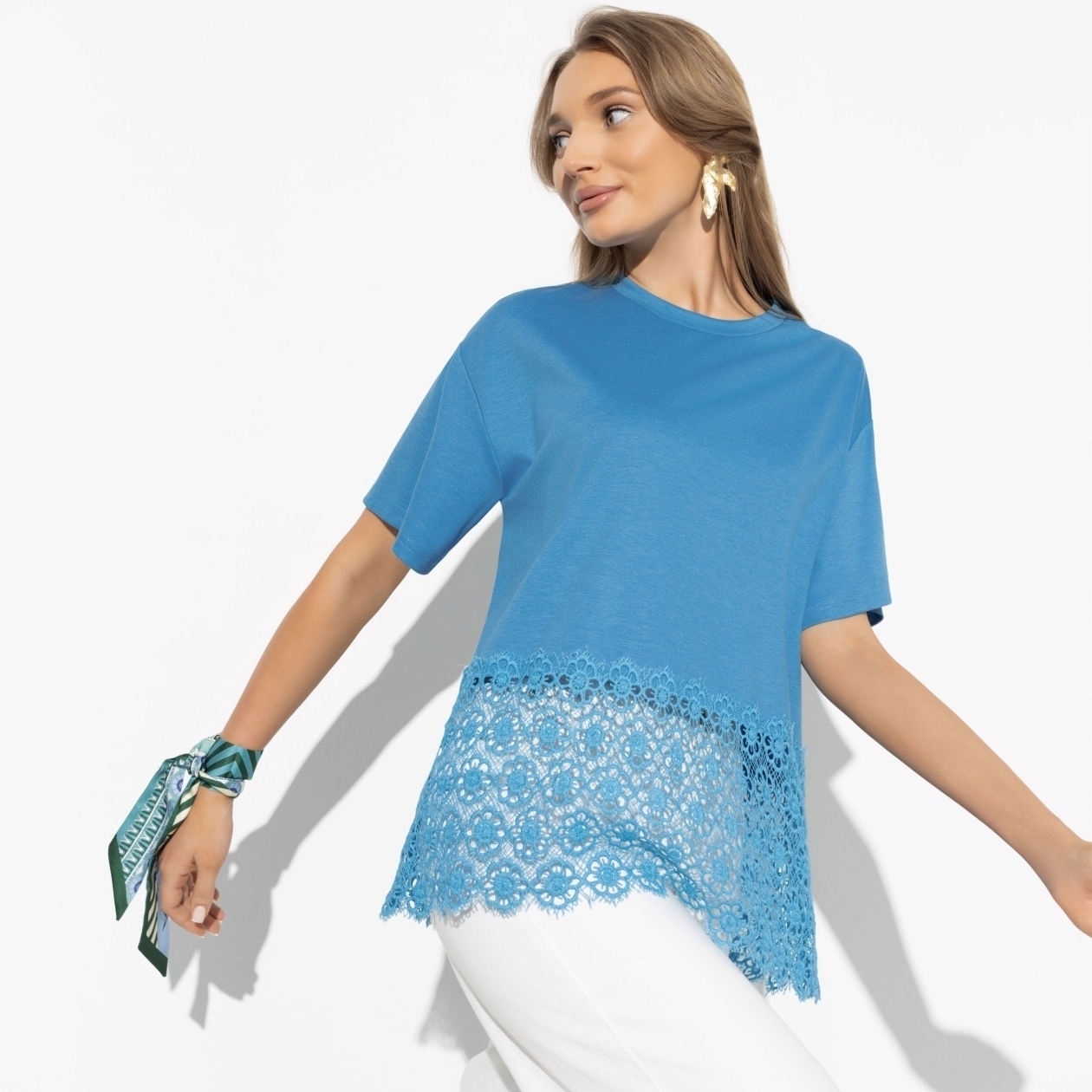 В 2026 принцесса – это не статус, а внутреннее ощущение! Яркая футболка от ЧАРУТТИ – про момент, когда можно быть яркой и ни перед кем не оправдываться. Кружево здесь не для красоты – оно как знак особого положения: вы знаете себе цену и не обязаны это доказывать. Трикотаж «милано» мягкий, комфортный, хорошо держит форму. Кружевная отделка добавляет образу фактуры и делает футболку заметнее базовой. Свободный крой подходит для джинсов, брюк и юбок. Отличный вариант для образов с характером.