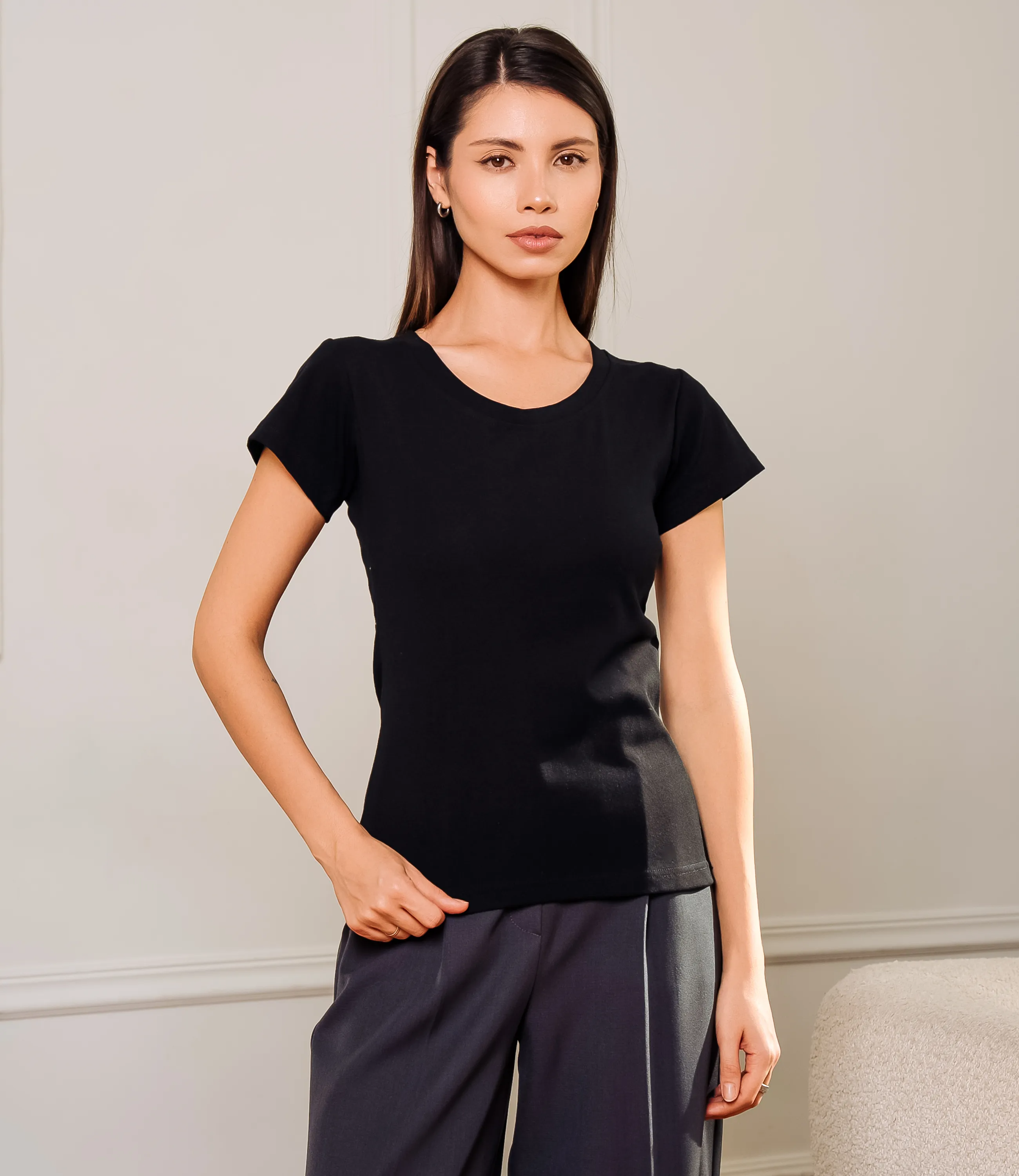 Футболка – это обязательный элемент гардероба, который подчеркивает стиль и индивидуальность каждой женщины. Эта модель с облегающим силуэтом и короткими рукавами обеспечивает комфорт и свободу движений, позволяя чувствовать себя уверенно в любом образе. Горловина выполнена в виде круглого выреза, что делает её универсальной и подходящей для любых стилей в одежде, от классического до casual. Изготовленная из 93% хлопка и 7% эластана, футболка обладает мягким и приятным на ощупь материалом, который дарит ощущение уюта на протяжении всего дня. Этот продукт идеально подходит для повседневной носки, ведь она прекрасно компонуется с юбками, брюками или шортами, что позволяет вашим покупателям создавать стильные и удобные образы для любых случаев. Качество этой футболки заслуживает особого внимания: даже после многочисленных стирок она сохраняет свою форму и яркость. Мы понимаем, как важно правильно подобрать размер, поэтому на нашем сайте есть таблица размеров, где ваши клиенты смогут легко произвести замеры и выбрать идеальный вариант. Предложенная цена данной футболки является доступной, что делает её отличным вариантом для оптовых закупок. Не упустите возможность пополнить ассортимент вашего магазина этой стильной и универсальной футболкой, которая позволит вашим покупателям выглядеть модно и чувствовать себя комфортно в любой ситуации! Рост модели: 168, параметры: 85-63-92.