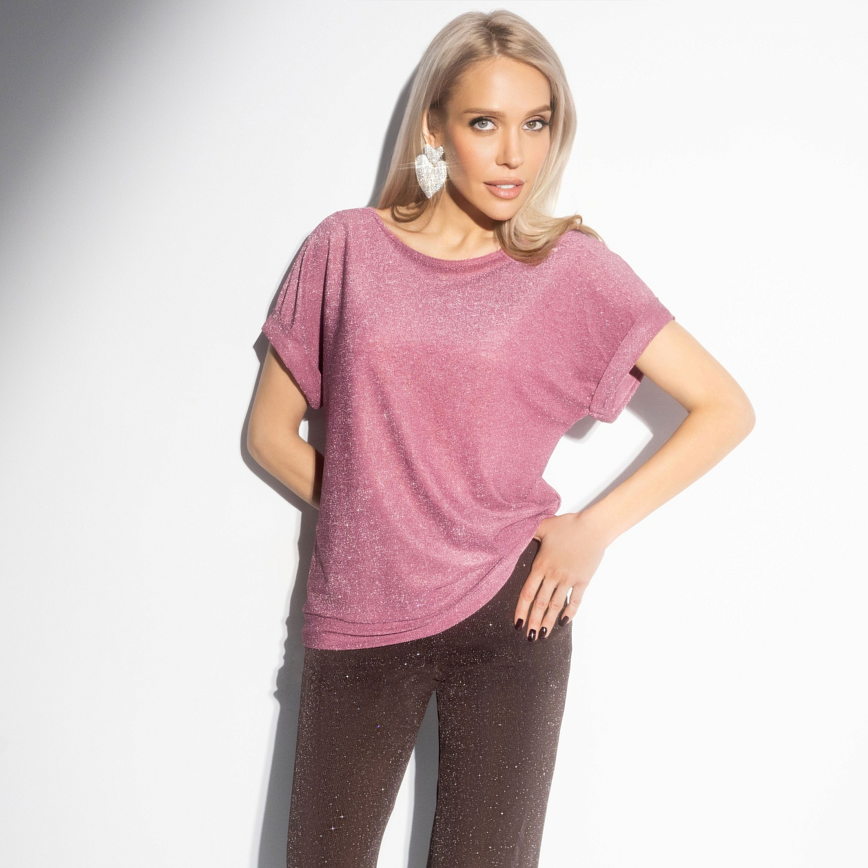 Футболка, которая звучит на частоте родных душ. Лёгкое мерцание словно посылает сигнал во Вселенную: «Я здесь». И чудо находит отклик. Блеск, который привлекает не взгляды ‒ а нужных людей. Лёгкий трикотаж с эффектом голограммы, карамельный розовый оттенок с россыпью блесток. Свободный крой не сковывает движения. Выбирайте эту модель для романтичных встреч и праздничных образов.