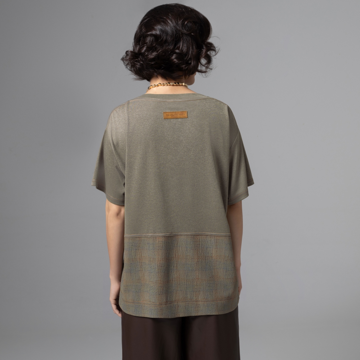 Спокойная уверенность, которую не нужно доказывать. Приглушенный стальной оттенок трикотажа, фактурный низ и лаконичные декоративные клапаны создают образ женщины, которая смотрит прямо и видит дальше других. Это та самая базовая вещь из премиум‑капсулы, которая заставляет джинсы, кожу и классические брюки выглядеть дороже. Ровные декоративные отстрочки из цветных нитей и чистая внутренняя обработка поддерживают ощущение премиального, продуманного до мелочей изделия ограниченного выпуска.
