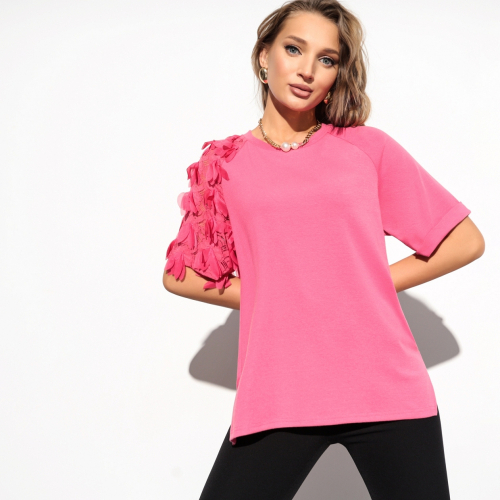 В этой футболке от бренда CHARUTTI ваш день начнётся с удовольствия и легкости. Это идеальный выбор для утреннего похода в модную кофейню или неспешной прогулки по парку. Свободный крой позволяет чувствовать себя расслабленно, независимо от того, как проходит ваш день — не забудьте про длину ниже линии бедра, которая добавляет изысканности и чуть-чуть игривой таинственности в образ. Приобретая эту футболку оптом, вы можете насладиться не только качеством и стилем, но и выгодой, которая приходит с большими партиями.