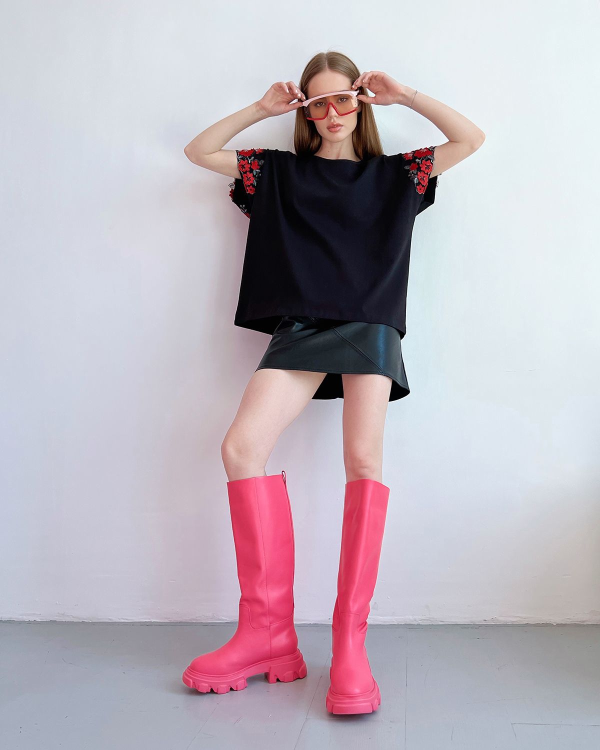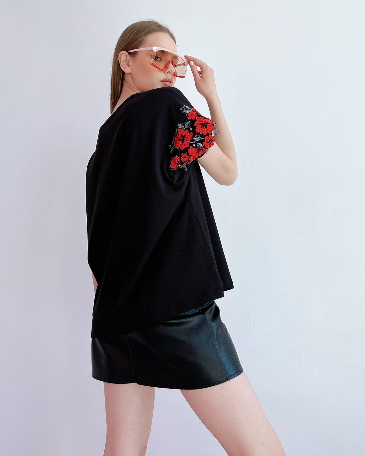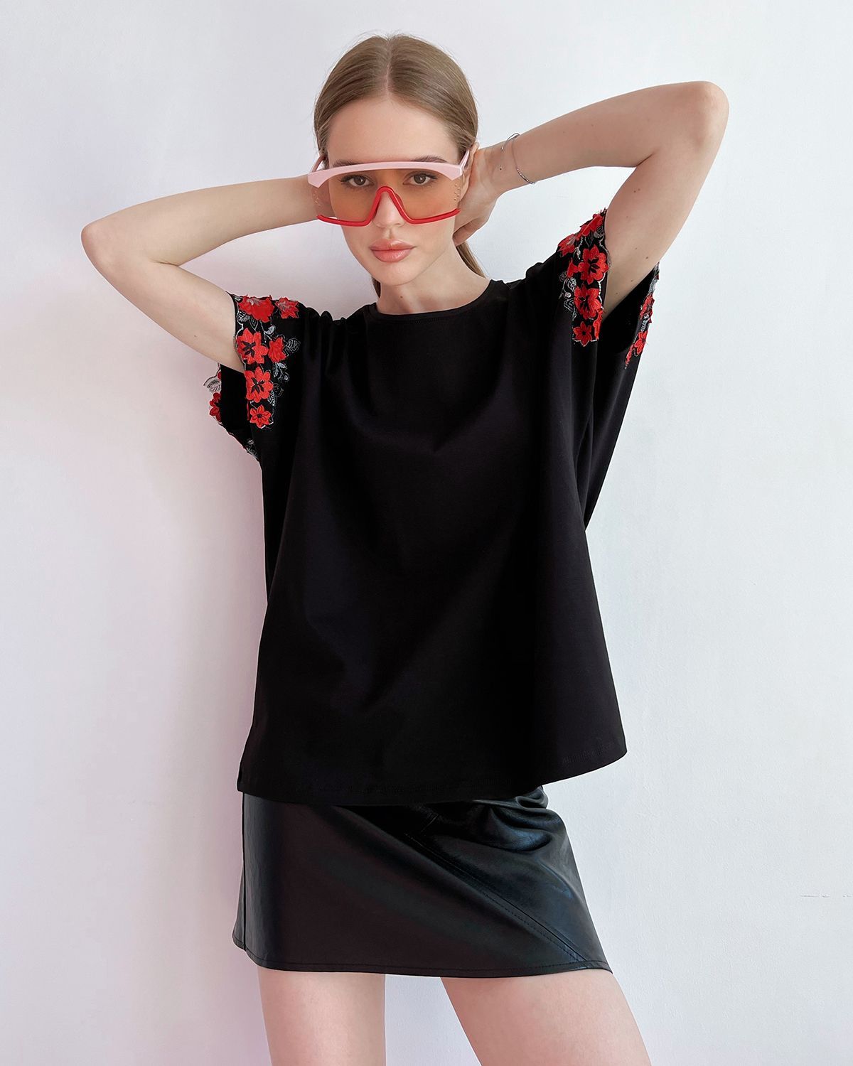 Футболка для женщин, умеющих сочетать в себе разные стихии. Спортивный стиль — это свобода движения, уверенность в себе и заявка на минимализм. Все эти черты подчёркиваются свободным кроем оверсайз и дополняются удлиненный силуэтом. Декор на рукавах — это игривость, женственность и кокетство. Он добавляет изделию текстуру, объём и изюминку. А всё вместе — это дерзкая женская футболка, которая бросает вызов обыденности. Такие носят смелые и стильные женщины.