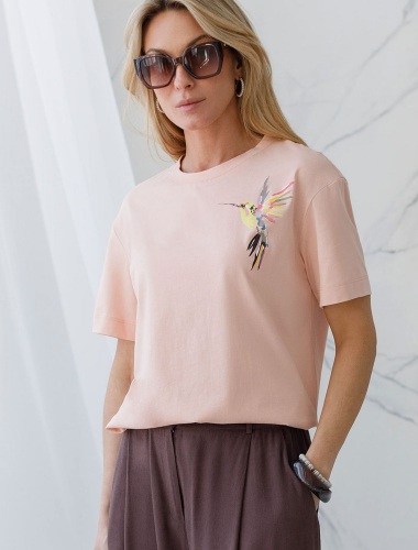 Футболка кофейного цвета с круглым вырезом изиз фактурного трикотажа в рубчик идеально сочетается с повседневным стилем и подходит для домашней носки или отдыха. Мягкое полотно из хлопка обеспечивает максимальный комфорт даже в течение длительного времени. Особенность этого изделия — эластичная структура ткани, благодаря чему она хорошо тянется и подстраивается под особенности фигуры. Короткие рукава делают модель легкой и универсальной. На рукавах отделка нежным кружевом в тон основного цвета добавляет нотку романтичности. Футболка подойдет для девушек и женщин, которые ценят уют и удобство. Нежная ткань приятна к телу, не вызывает дискомфорта и позволяет коже дышать, что особенно важно в повседневной жизни. Футболка в мелкий рубчик полуприлегающего кроя визуально вытягивает силуэт и делает фигуру более стройной. Разнообразие размеров позволяет выбрать подходящий вариант для любых параметров, в том числе на большие размеры. Эта красивая футболка практична и незаменима для тех, кто ищет качественные и стильные вещи на каждый день.