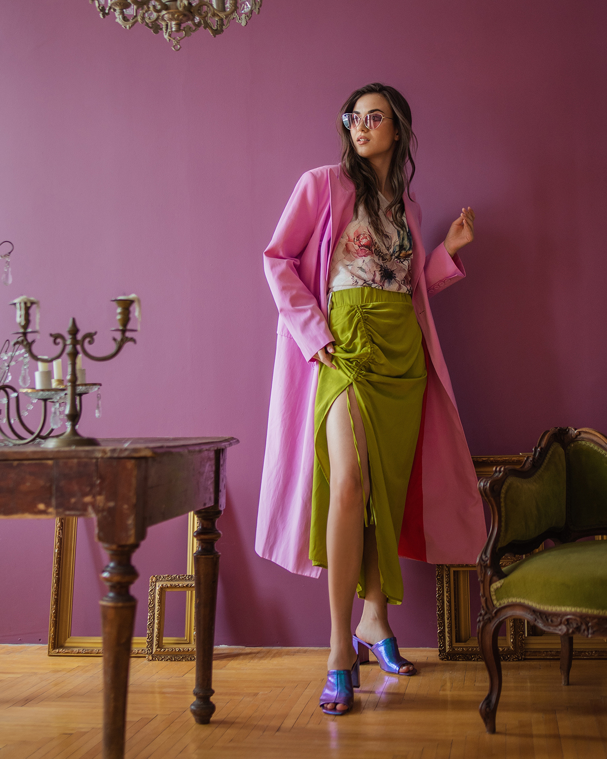 Выбирая подходящий размер, ориентируйтесь на таблицу в карусели. Если хотите создать более расслабленный образ, как на модели, берите изделие на размер или два больше.