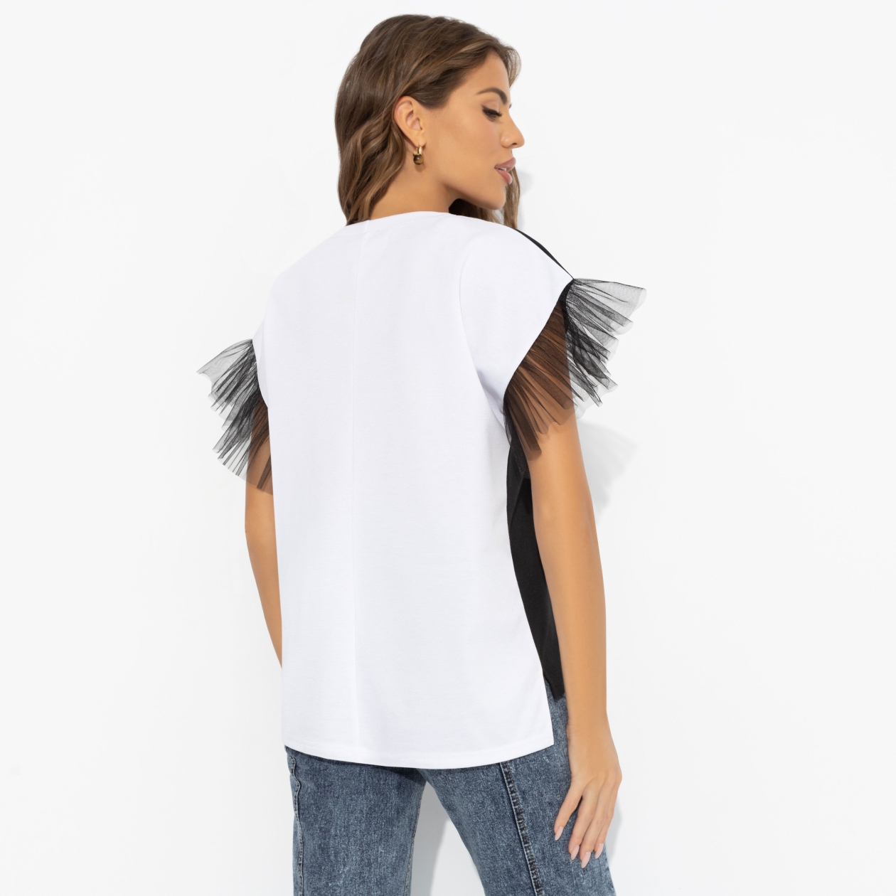 Искра, буря, безумие… В такой футболке-заявлении от ЧАРУТТИ вы всегда ‒ то самое первое впечатление: контрасты, акцентные рукава и стиль, который запоминается с первой секунды. Живи сегодня! Футболка из трикотажа «милано» с черно-белым колорблоком и рукавами из фатина. То, что нужно для событий и встреч, где важна харизма. Надпись на изделии: «Живи сегодня!».