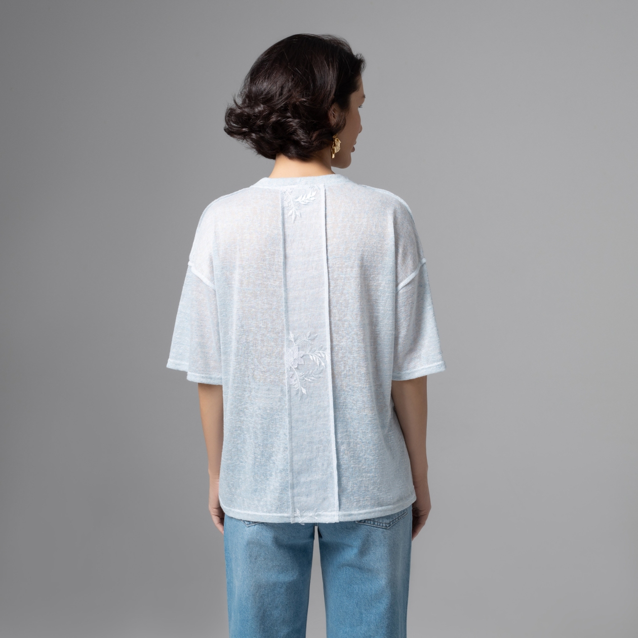 Haute couture – только в формате удобной футболки и по доступной цене. Носите её с простыми джинсами, белыми кедами или юбкой‑миди, и каждый раз образ будет смотреться по‑разному, но одинково эффектно. Сетка с вышивкой даёт легкость и фактурный рельеф, эту ткань часто исспользуют в вечерних и свадебных коллекциях, поэтому образ считывается максимально утончённым. Швы наружу создают дополнительный акцент.